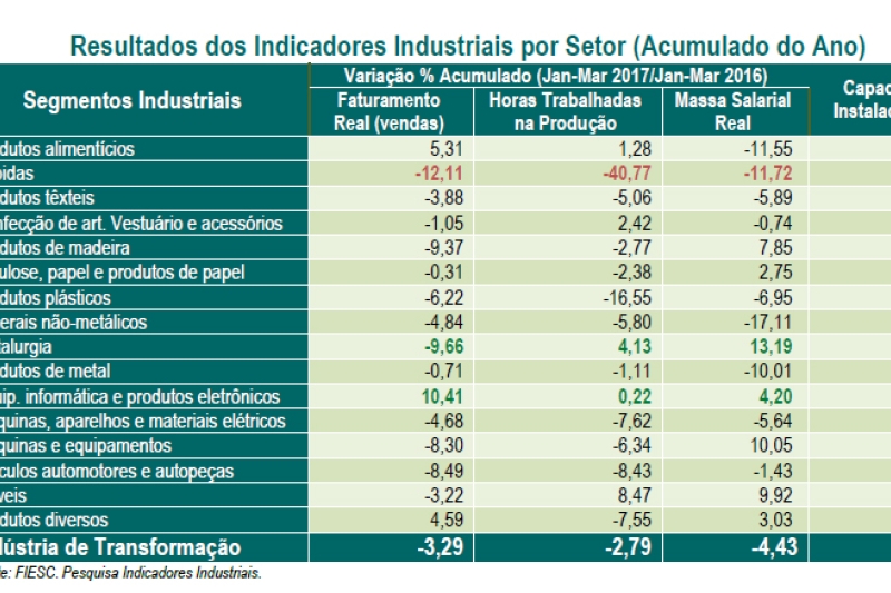 Vendas da indústria acumulam queda de 3,3% no quadrimestre