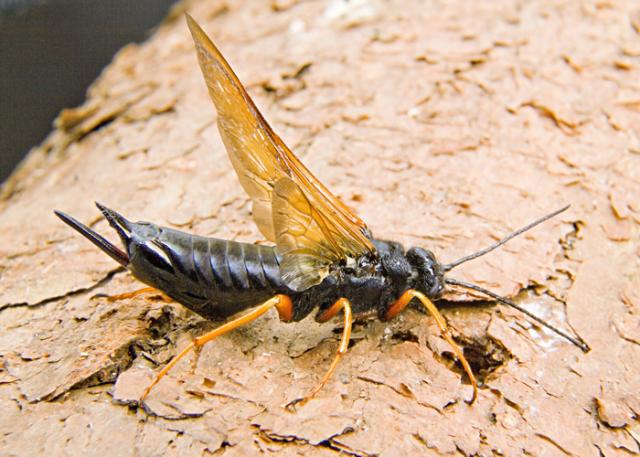 A Sirex noctilio, também conhecida como Vespa-da-Madeira, é uma praga que ataca preferencialmente plantações de pinus sem manejo. A vespa deposita os ovos no tronco da árvore, causando apodrecimento. Copa amarelada e respingos de resina no tronco são indícios de infestação. Identificadas essas características, a CIDASC ou Epagri mais próxima deve ser comunicada imediatamente.