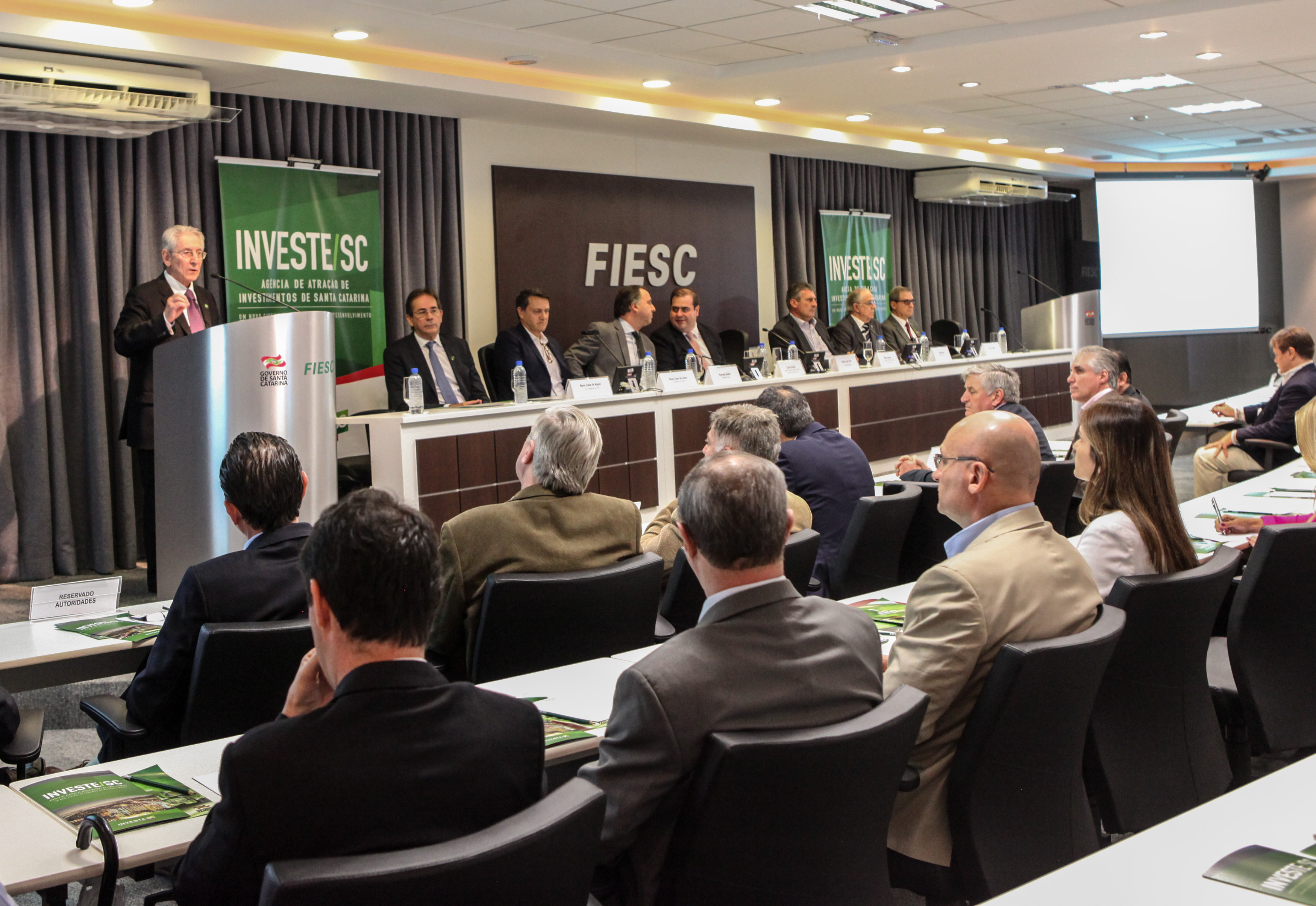 Florianópolis, 26.11.2015 - Aumentar o investimento nos setores de alto valor agregado, reduzindo as importações, reforçando o nível tecnológico da indústria e fomentando o desenvolvimento de todas as regiões do Estado. Estes são alguns dos principais objetivos da Investe SC, a agência de atração de investimentos lançada nesta quinta-feira (26) pela Federação das Indústrias de Santa Catarina (FIESC) e o Governo do Estado.