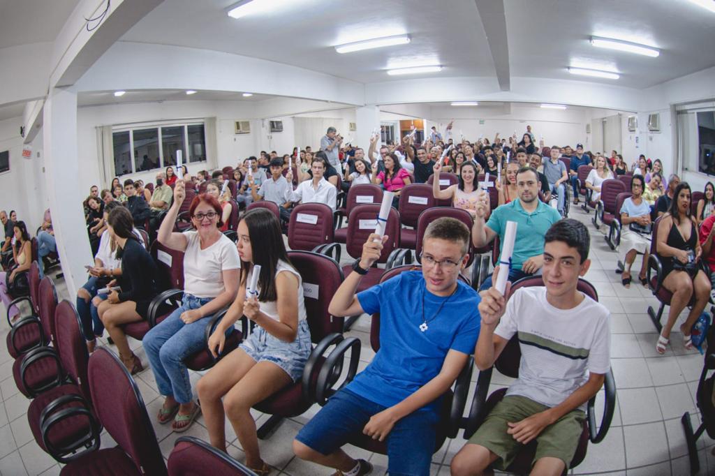 Biguaçu, 20.1.2023 – A Prefeitura de Biguaçu, por meio da Secretaria de Desenvolvimento Econômico e o SESI/SENAI Tijucas, entregaram na quarta-feira (18), 57 certificados de conclusão dos cursos de Informática Básica, Boas Práticas para Instalação de Ar-Condicionado, Elétrica Predial e Atendimento ao Cliente e Técnica em Vendas. A cerimônia de formatura foi realizada no Centro Administrativo Municipal com a presença de autoridades, familiares e amigos dos diplomados.