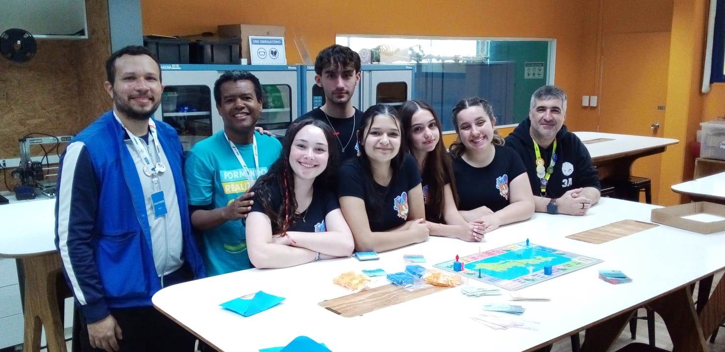 Florianópolis, 15.08.2024 – Alunos da Escola SESI em Florianópolis criaram uma versão local do Banco Imobiliário, jogo clássico de tabuleiro que consiste na compra e venda de propriedades como bairros, casas e empresas.