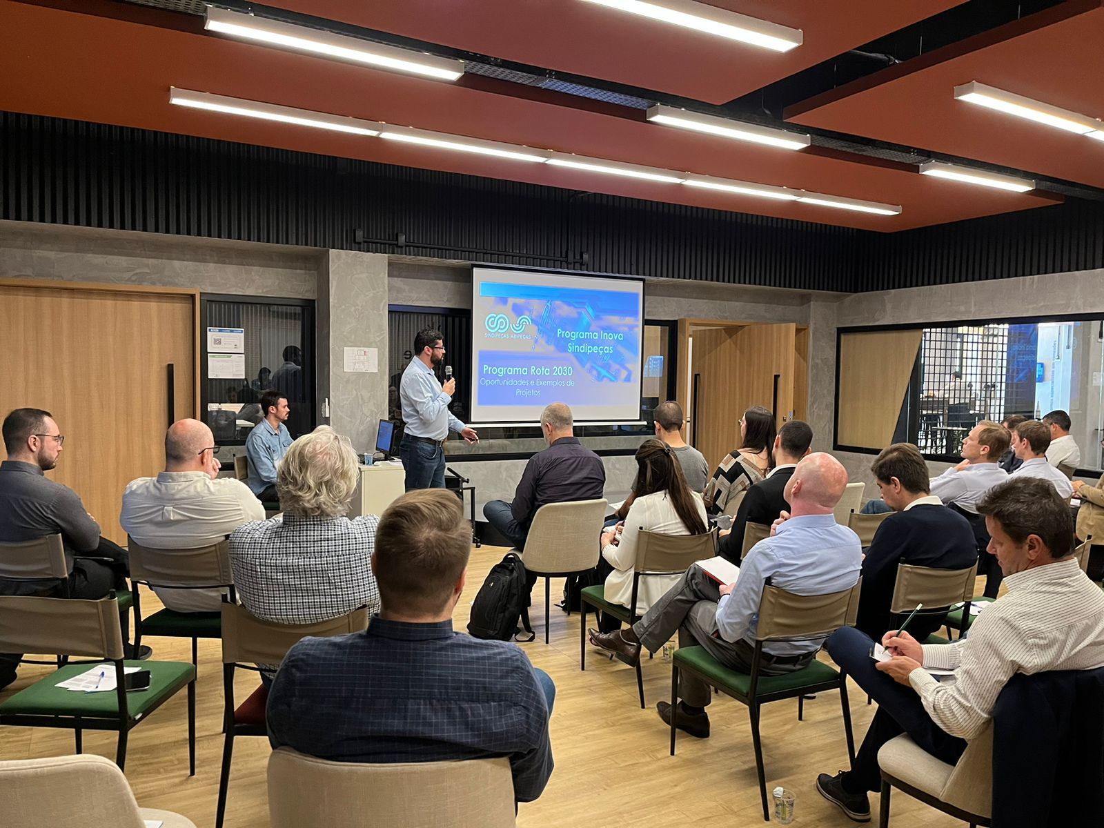 No encontro, o gerente de inovação e tecnologia do SENAI, Maurício Cappra Pauletti, apresentou o trabalho desenvolvido pela rede de institutos de inovação e tecnologia e como a entidade pode auxiliar o setor automotivo. “Tem muitos recursos, muitas vezes não-reembolsáveis, destinados a projetos e consultorias que nem sempre chegam às empresas. “Acabamos nos especializando em buscar recursos não-reembolsáveis para trazer para as indústrias porque a captação tem uma série de regras, restrições e prestação de contas que nem sempre é fácil gerenciar. Então temos um escritório de projetos que trabalha no entendimento das fontes de fomento para trazer para a indústria as possibilidades de captação e ajudar a elaborar projetos”, explicou.
