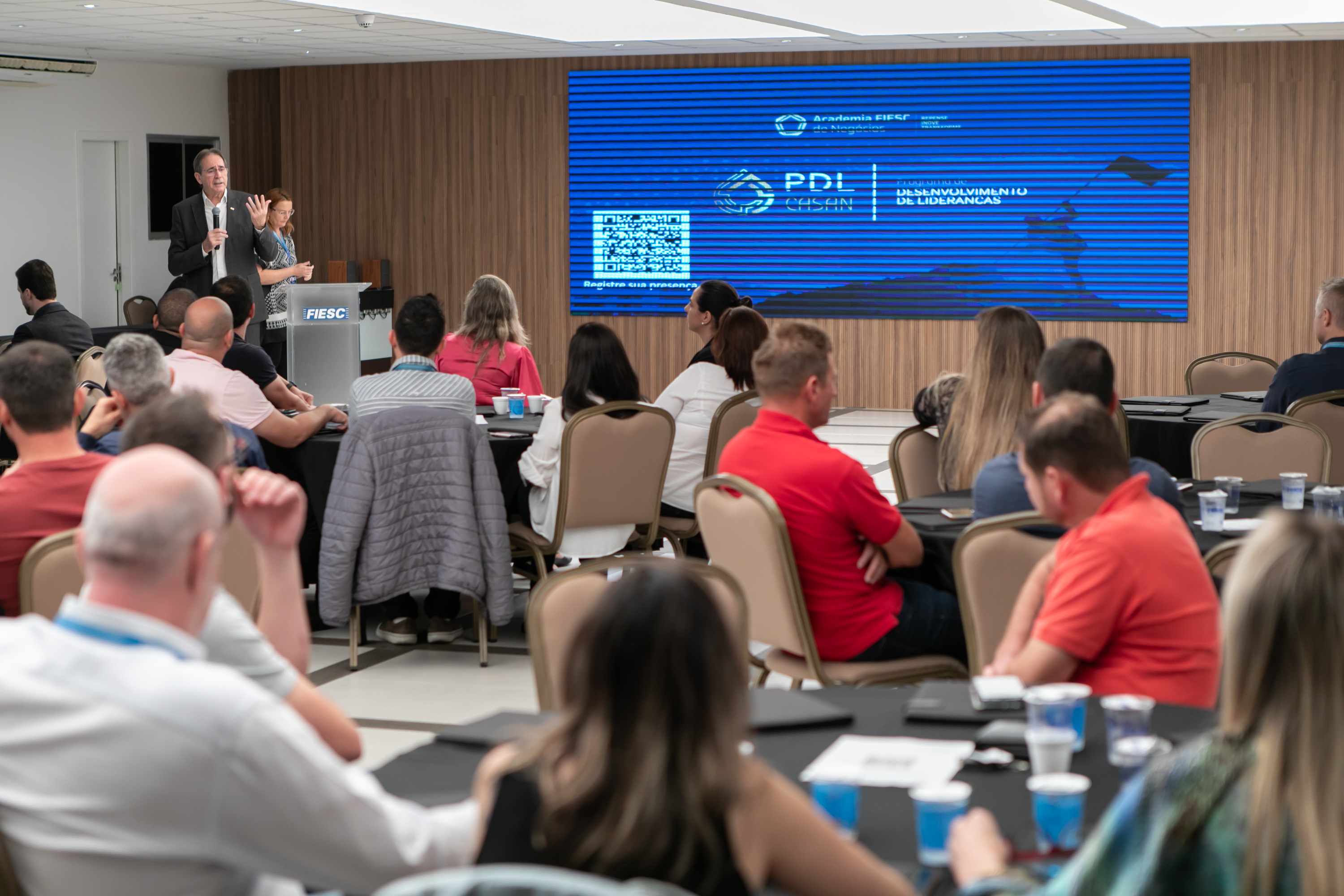 Florianópolis, 17.08.2023 - A terceira e última turma do programa de desenvolvimento de lideranças da Companhia de Águas e Saneamento de Santa Catarina (Casan) deu início à formação nesta quinta-feira, dia 17. Serão três meses com encontros sendo realizados nas cidades de Florianópolis, Criciúma, Chapecó e Rio do Sul. O programa é conduzido por especialistas em educação executiva e corporativa da Academia FIESC de Negócios e 285 líderes estão sendo formados.