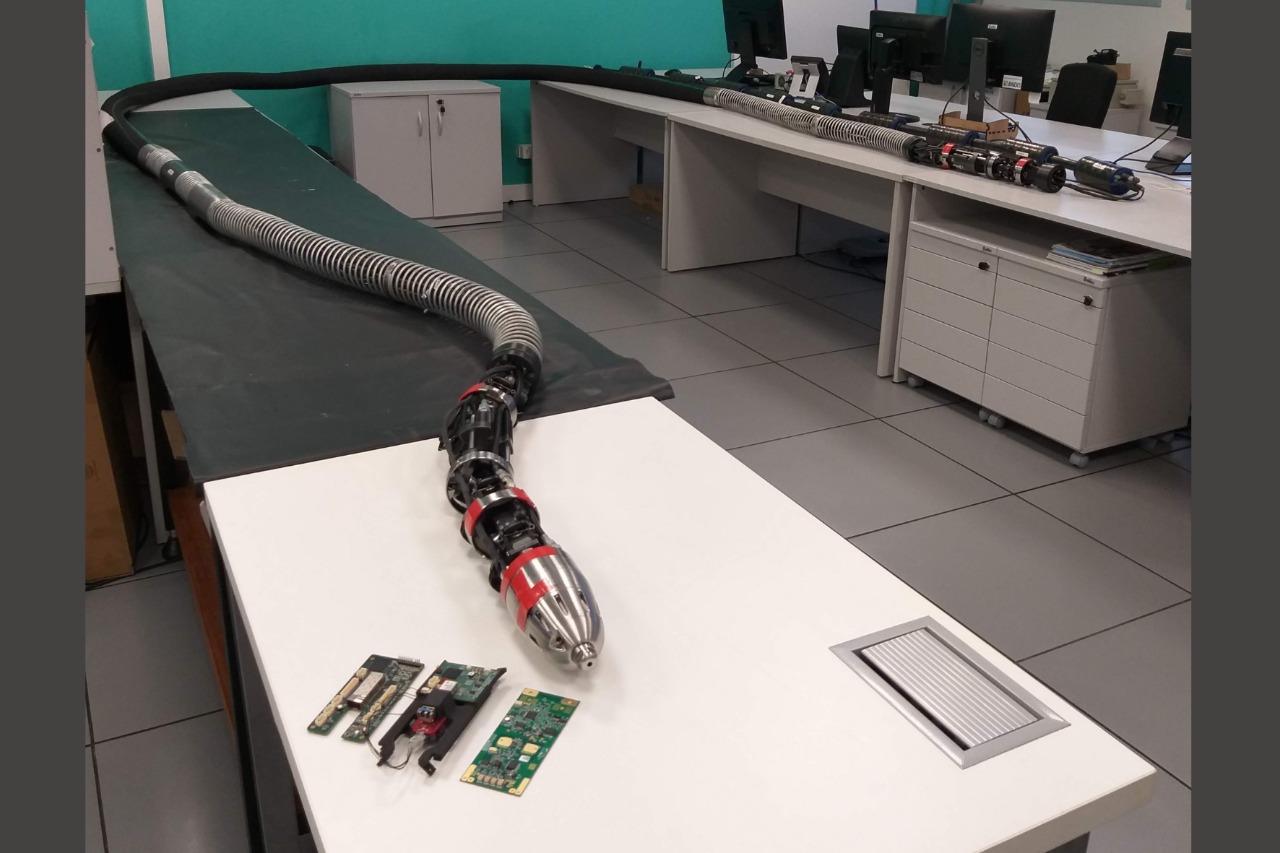 Florianópolis, 07.6.2021 - Pela segunda vez, os Institutos SENAI de Inovação em Sistemas Embarcados, de Florianópolis (SC), e de Polímeros, de São Leopoldo (RS), são finalistas do Prêmio ANP de Inovação Tecnológica 2020, da Agência Nacional de Petróleo, pelo desenvolvimento do robô Annelida, que terá a função de limpar dutos de do pré-sal. A primeira premiação ocorreu em 2019, na fase 1 do projeto. Em 2021, a premiação decorre dos avanços do projeto, que entrou na fase 2. A inovação tem parceria com as Universidades Federal do Rio Grande do Sul (UFRGS) e de São Paulo (USP).
