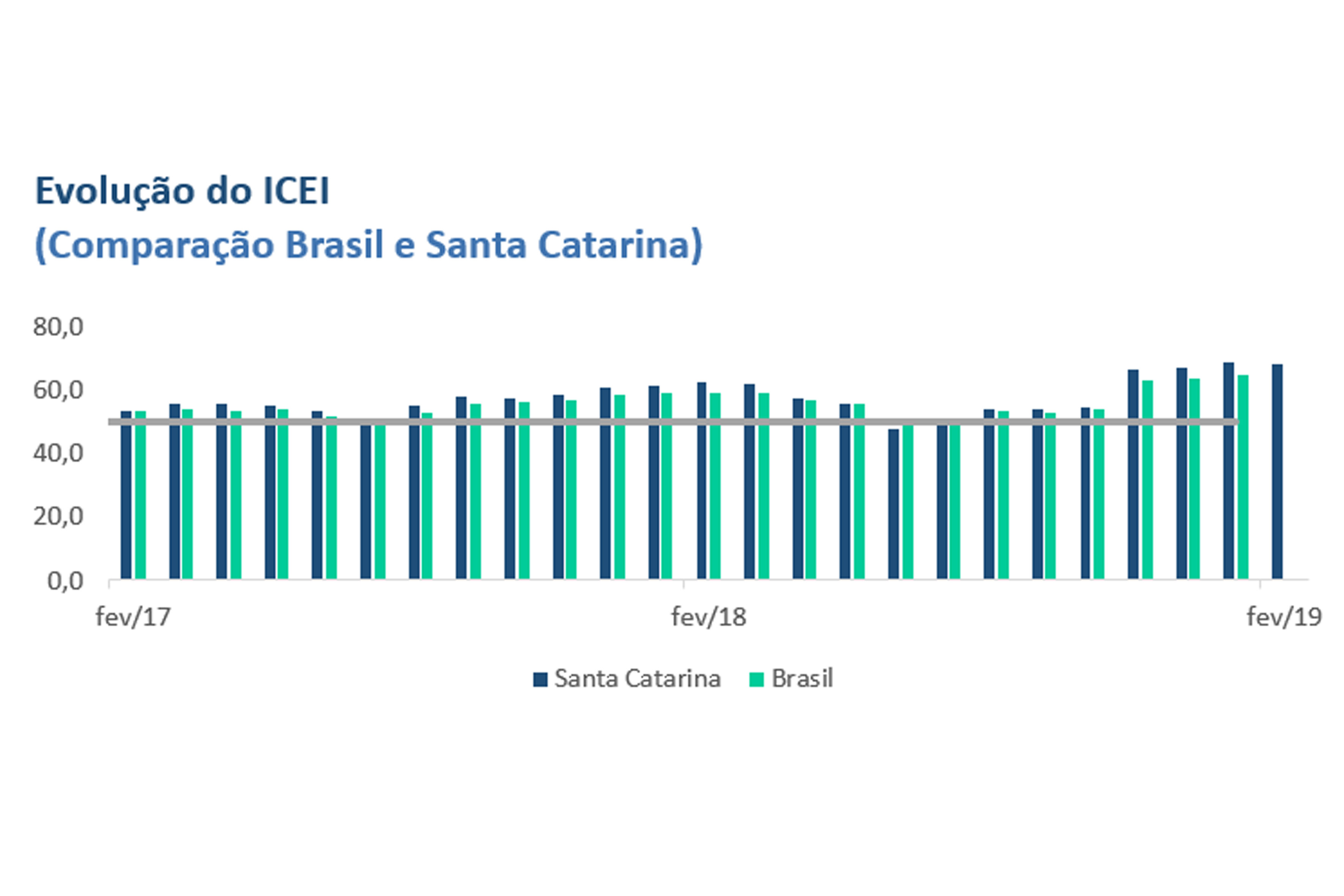 Florianópolis, 20.2.2019 – A confiança do empresário industrial de Santa Catarina segue elevada. Em fevereiro o indicador alcançou 68 pontos, valor 0,5 ponto inferior ao registrado em janeiro, mostra pesquisa da FIESC. Os indicadores variam de zero a cem pontos. Quando estão acima de 50 pontos mostram que os empresários estão otimistas. Dos componentes que integram o índice de confiança, houve aumento de 3,7 pontos do indicador de condições atuais, influenciada pela percepção dos empresários em relação à própria indústria. O indicador de expectativas futuras passou de 74 para 71,4 pontos em fevereiro. A maior alta foi registrada nas condições dos empresários em relação ao próprio negócio, com avanço de 4,4 pontos no mês.