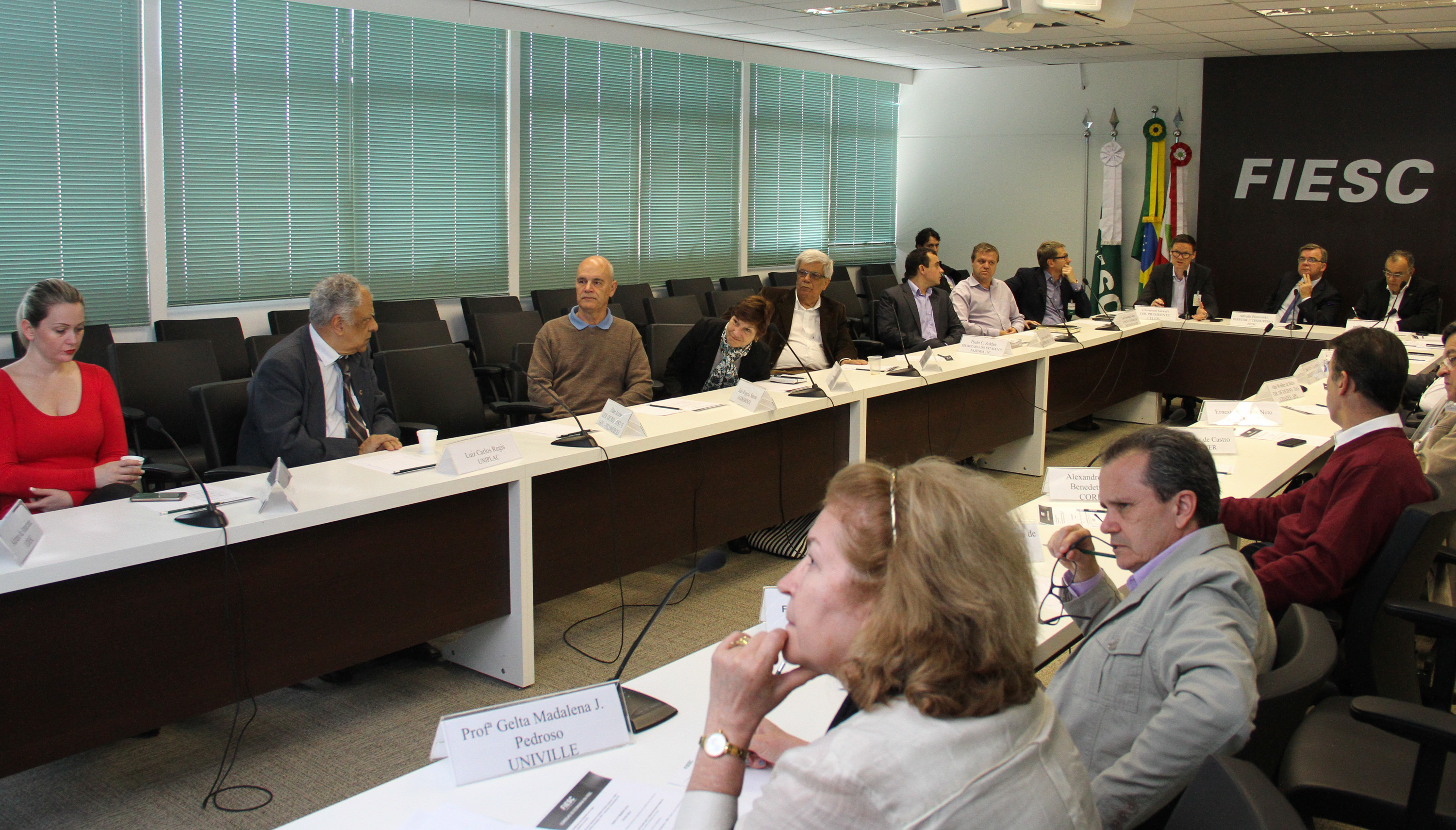 Florianópolis, 6.9.2016 – O Conselho de Economia da FIESC debateu desenvolvimento regional com a participação da Celesc, Fundação Escola de Governo (ENA) e da indústria C-Pack. Na reunião, realizada nesta terça-feira (6), em Florianópolis, o presidente da Celesc, Cleverson Siewert, fez um panorama dos investimentos da concessionária desde 2011 e destacou a implementação de um sistema de governança na companhia que fatura cerca de R$ 12 bilhões por ano. O encontro foi coordenado pelo presidente do conselho, Alfredo Piotrovski.