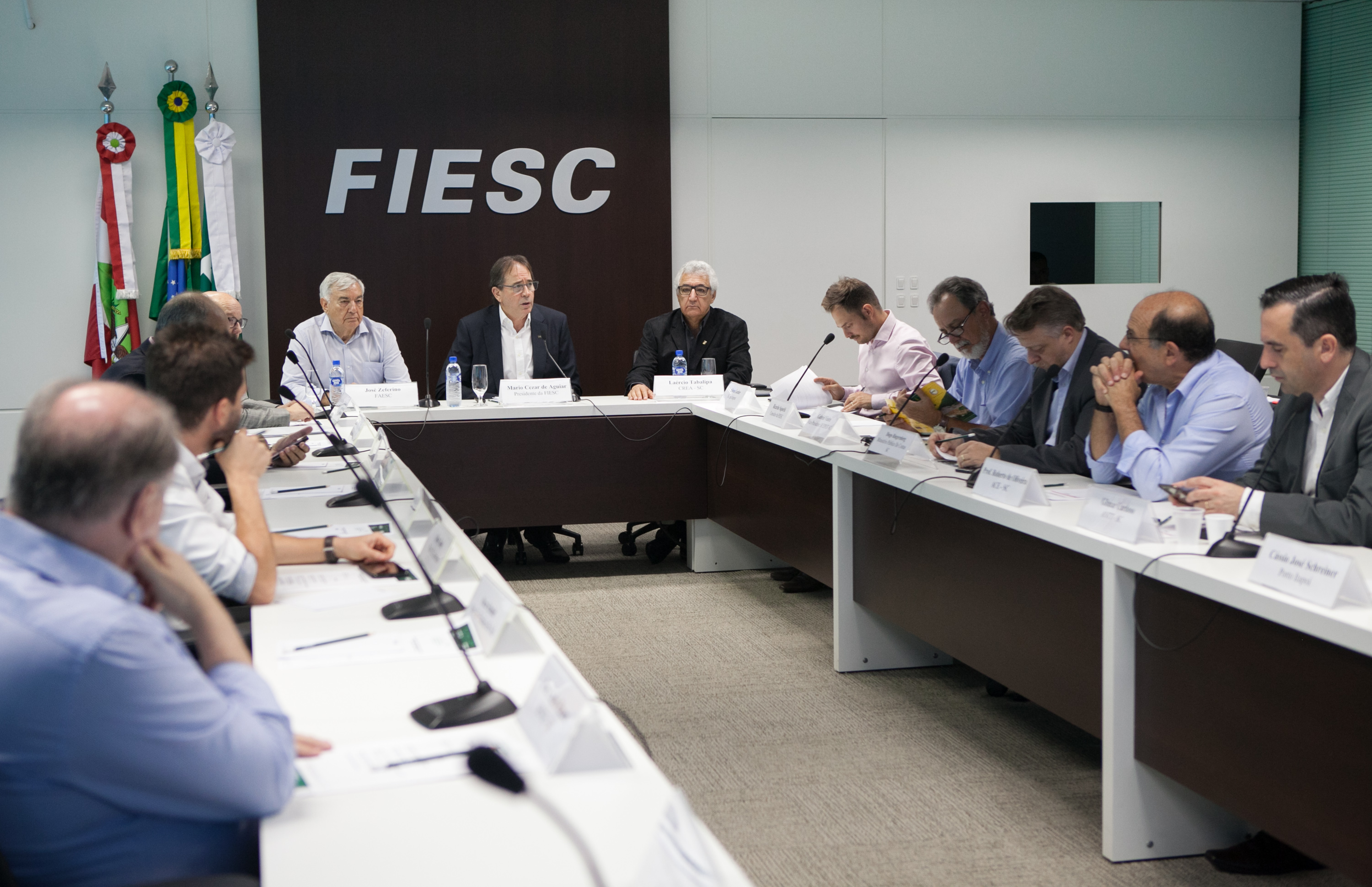 Florianópolis, 14.11.2018 – Durante reunião do Conselho Estratégico para Infraestrutura de Transporte e Logística Catarinense, nesta quarta-feira (14), a Federação das Indústrias de Santa Catarina (FIESC) apresentou parecer técnico sobre a proposta da Agência Nacional de Transportes Terrestres (ANTT) para a concessão do trecho Sul da BR-101. O Conselho manifestou-se favoravelmente à proposição da ANTT. Na reunião, o presidente da FIESC, Mario Cezar de Aguiar, que também está à frente do Conselho, defendeu ainda a cobrança de pedágio por quilômetro rodado, sistema conhecido internacionalmente como free-flow. Nesse modelo de free-slow, os usuários pagam proporcionalmente pelo uso da rodovia e a cobrança é feita por sistemas eletrônicos, com pórticos instalados na estrada e tags (etiquetas eletrônicas) fixadas nos veículos.