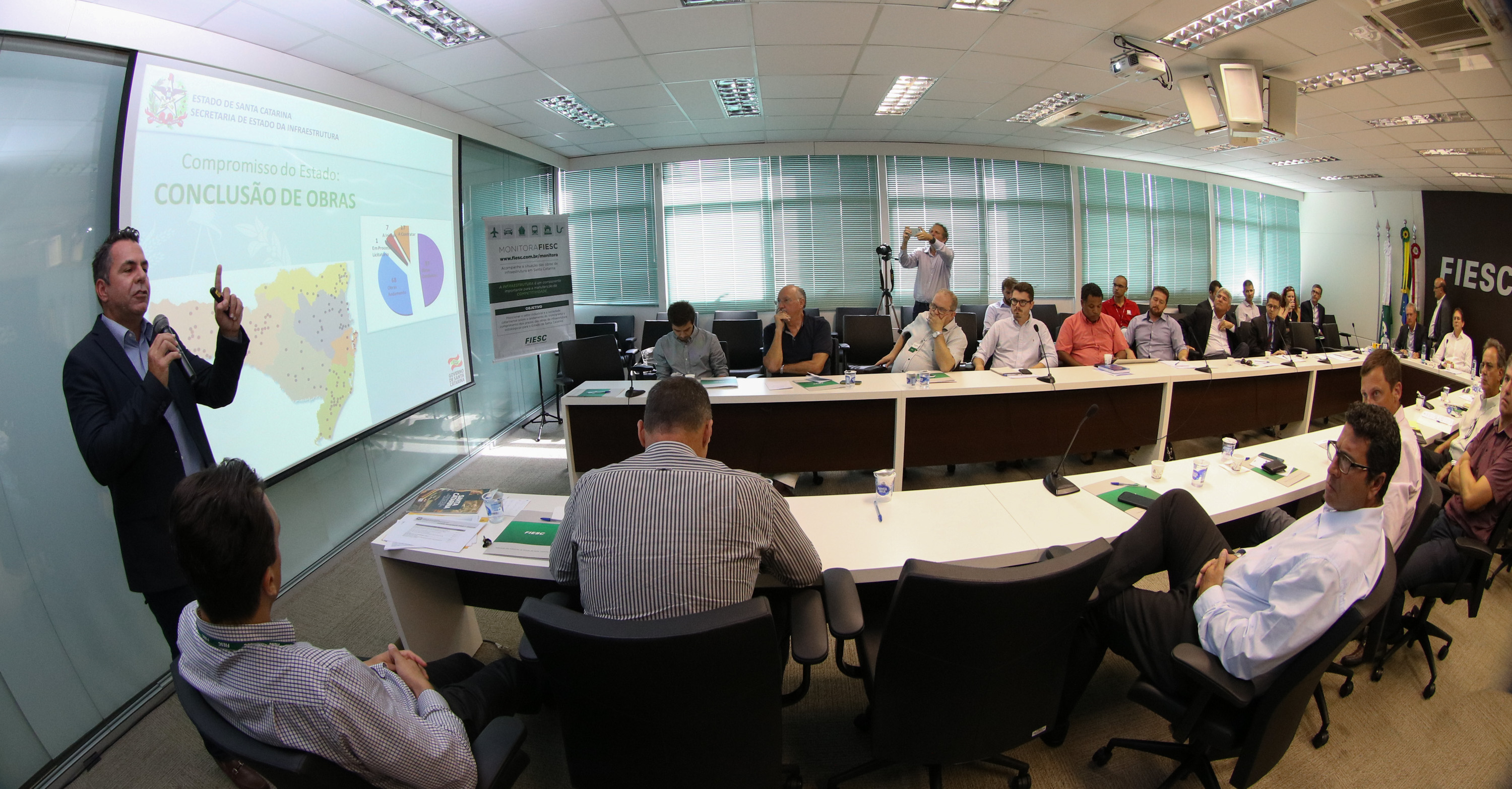 O presidente da Câmara, Mario Cezar de Aguiar, destacou que a FIESC acompanha um conjunto de 117 obras de infraestrutura estaduais e federais, que estão sendo executadas em Santa Catarina e totalizam R$ 8,9 bilhões. “Para nossa surpresa, identificando as causas dos atrasos, observamos que nem sempre faltam recursos. Há obstáculos para desapropriar, além de questões ambientais, de gestão, judicialização, entre outras. Há uma série de causas que fazem com que as obras não tenham o ritmo adequado”, disse. Clique aqui e conheça o Monitora FIESC.
