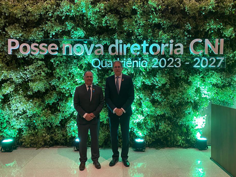 Florianópolis, 01.11.2023 - Mario Cezar de Aguiar, presidente da Federação das Indústrias de Santa Catarina (FIESC), assumiu em cerimônia nesta terça-feira (31), em Brasília, mandato como vice-presidente da Confederação Nacional da Indústria (CNI). Aguiar integra a diretoria eleita para o período 2023-2027, que tem como presidente o também industrial Ricardo Alban. O 1° vice-presidente da FIESC, Gilberto Seleme, também foi empossado na cerimônia, assumindo o cargo de diretor da CNI.