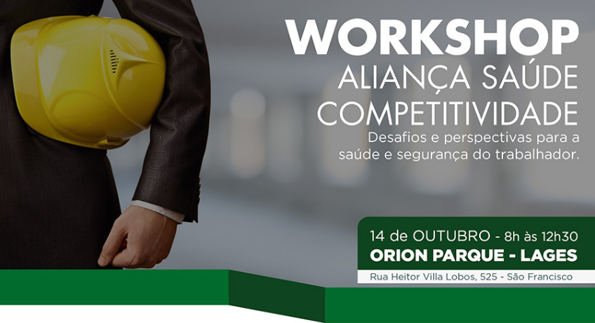 Florianópolis, 10.10.2016 – Lages recebe no dia 14 de outubro o workshop Aliança Saúde Competitividade, para discutir saúde e segurança do trabalhador. O encontro, que será realizado no Orion Parque, das 8h30min às 12h30min, objetiva consolidar e priorizar as necessidades das indústrias relacionadas ao tema.