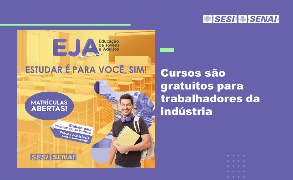 Para se matricular na educação de jovens e adultos, basta procurar a unidade do SESI mais próxima, munido dos seguintes documentos: CPF, RG, carteira de trabalho, histórico escolar e comprovante de residência. As matrículas podem ser feitas até o dia 26 de fevereiro.