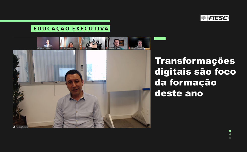 Florianópolis, 25.11.2020 – Com o tema “Desafios da transformação digital: estratégia, organização e pessoas”, o SENAI, entidade da FIESC, deu início nesta quarta-feira (25) à nona edição do Programa Internacional de Educação Executiva. Oferecida em parceria com a ISE Business School, a formação terá como foco a pressão sobre líderes e organizações para que se adaptem às novas demandas criadas pelas tecnologias digitais. Este ano, o curso será completamente a distância, por conta da pandemia.