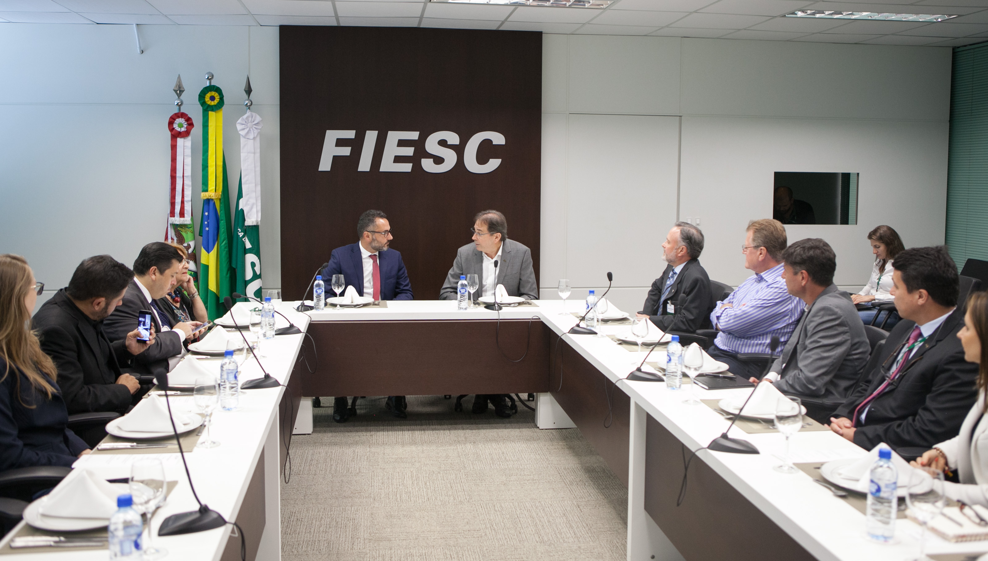 Florianópolis, 15.1.2019 - O presidente da FIESC, Mario Cezar de Aguiar, apresentou o programa de internacionalização da entidade ao secretário de Articulação Internacional, Derian Campos, durante reunião nesta terça-feira (15), na sede da Federação, em Florianópolis. O programa, lançado em dezembro, tem o objetivo de tornar as empresas mais competitivas e prepará-las para as diversas possibilidades que o mercado internacional oferece, seja exportação, importação ou alianças para fazer frente aos concorrentes internacionais presentes no Brasil e no exterior. Clique aqui e saiba mais.