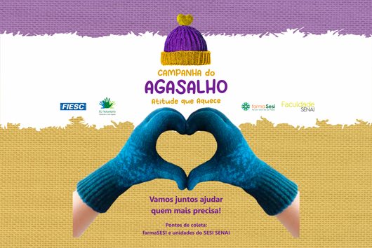 Florianópolis, 9.06.2022 – A Federação das Indústrias (FIESC) realiza em todo o estado campanha para arrecadar agasalhos neste inverno. Os itens doados serão encaminhados às instituições que participam do programa Eu Voluntário. As lojas da rede farmaSesi e as unidades do SESI e do SENAI são pontos de coleta.