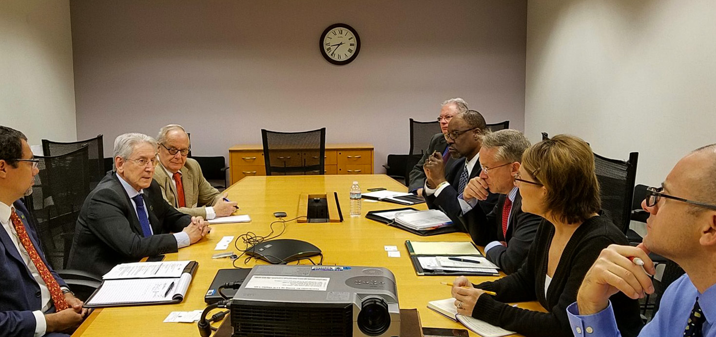 Florianópolis, 08.11.2016 – Iniciativas norte-americanas voltadas à formação para o mundo do trabalho foram apresentadas nesta terça (8) ao presidente da FIESC, Glauco José Côrte, em visita ao ministério da Educação dos Estados Unidos, em Washington. De acordo com o Andrew Johnson e Edward Smith, ambos da divisão de educação acadêmica e técnica do Departamento Educacional, o maior objetivo do governo americano é contribuir para que os estudantes adquiram competências acadêmicas, técnicas e também as exigidas pelo setor produtivo.