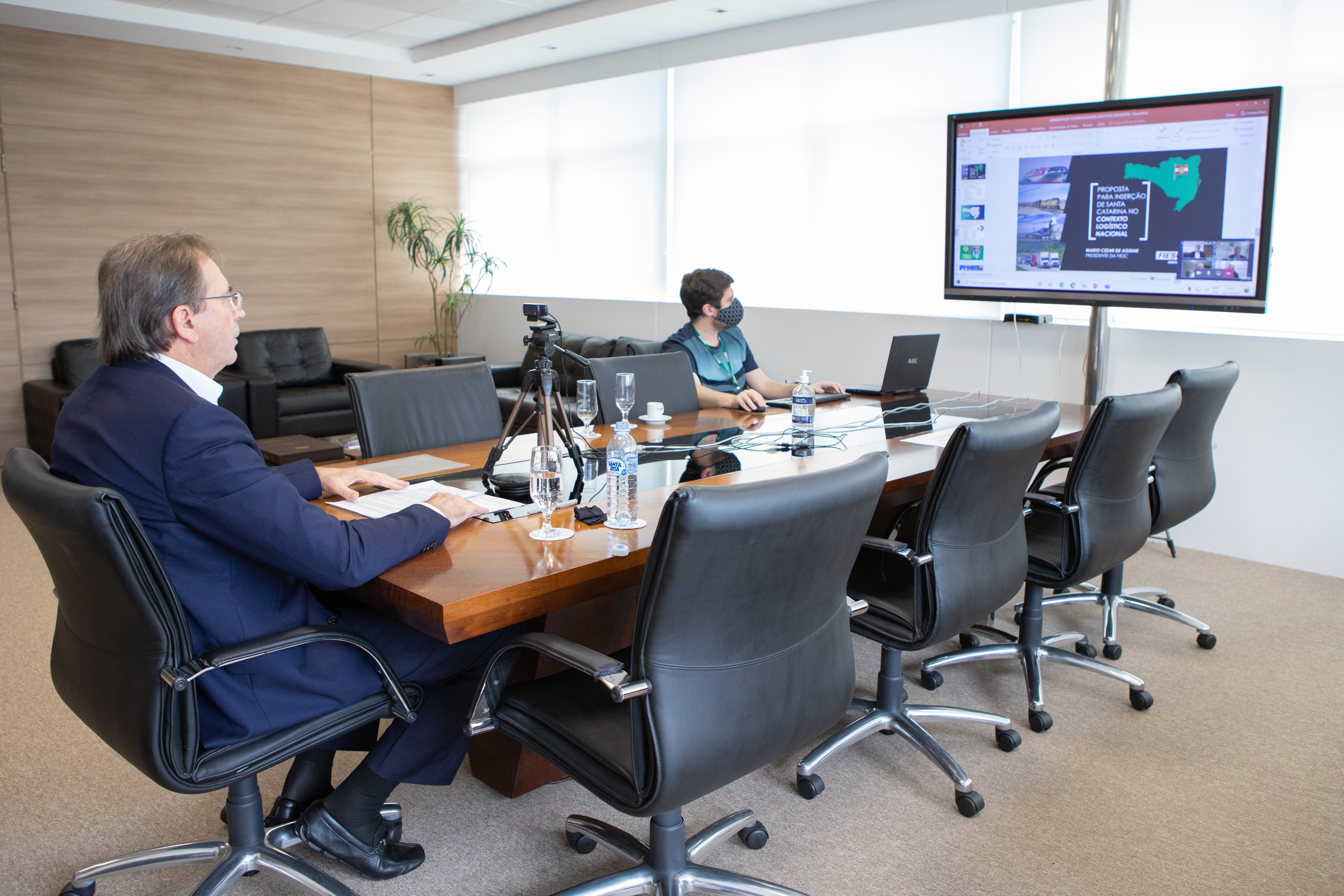 Florianópolis, 5.11.2020 – “Na nossa visão, precisamos ter uma cadeia logística eficiente para fomentar a nossa indústria e torná-la cada vez mais competitiva”, disse o presidente da FIESC, Mario Cezar de Aguiar. Ele fez uma apresentação sobre a logística catarinense, durante o painel "A experiência multimodal alemã: melhores práticas no hub central da Europa", no evento Logistique Digital, nesta quinta-feira, dia 5, que contou com a presença de especialistas do país europeu.