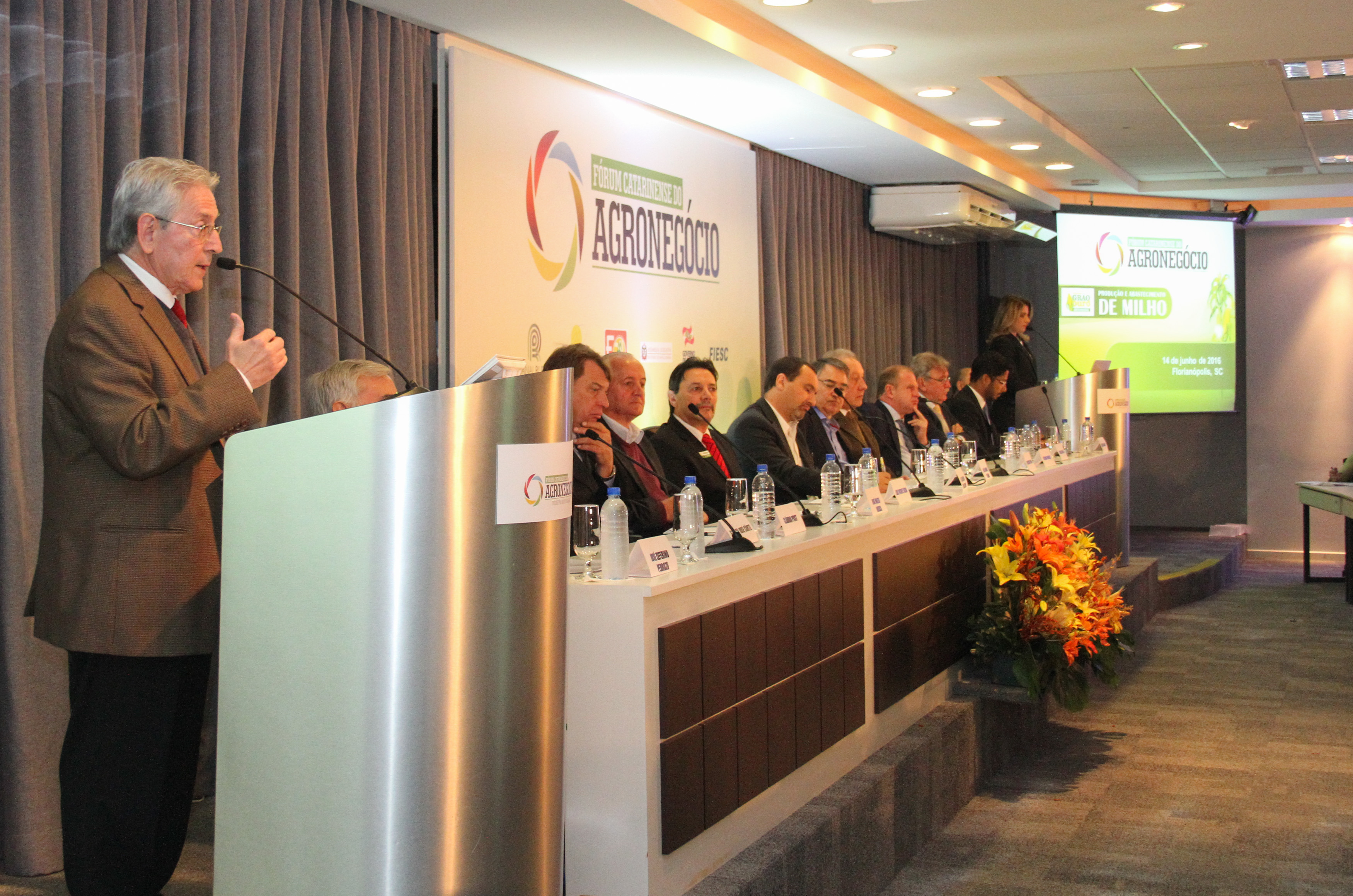 Florianópolis, 14.06.2016 – O aumento da oferta de milho para a agroindústria catarinense de carnes passa pela melhoria na infraestrutura de logística e por ganhos de produtividade no plantio do grão. Estas são algumas das principais conclusões do Fórum Catarinense do Agronegócio, realizado na Federação das Indústrias de Santa Catarina (FIESC), nesta terça-feira (14). O evento debateu a situação atual e as perspectivas para o insumo, que dobrou de preço no último ano.