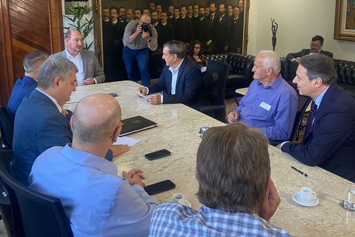 Florianópolis, 30.10.2024 - Representantes da Federação das Indústrias de SC (FIESC) e entidades do setor produtivo catarinense visitaram nesta terça-feira (29) o presidente da Assembleia Legislativa, deputado Mauro De Nadal (MDB). O objetivo da reunião foi manifestar a preocupação do setor com a demora na implantação do Cadastro Ambiental Rural (CAR).