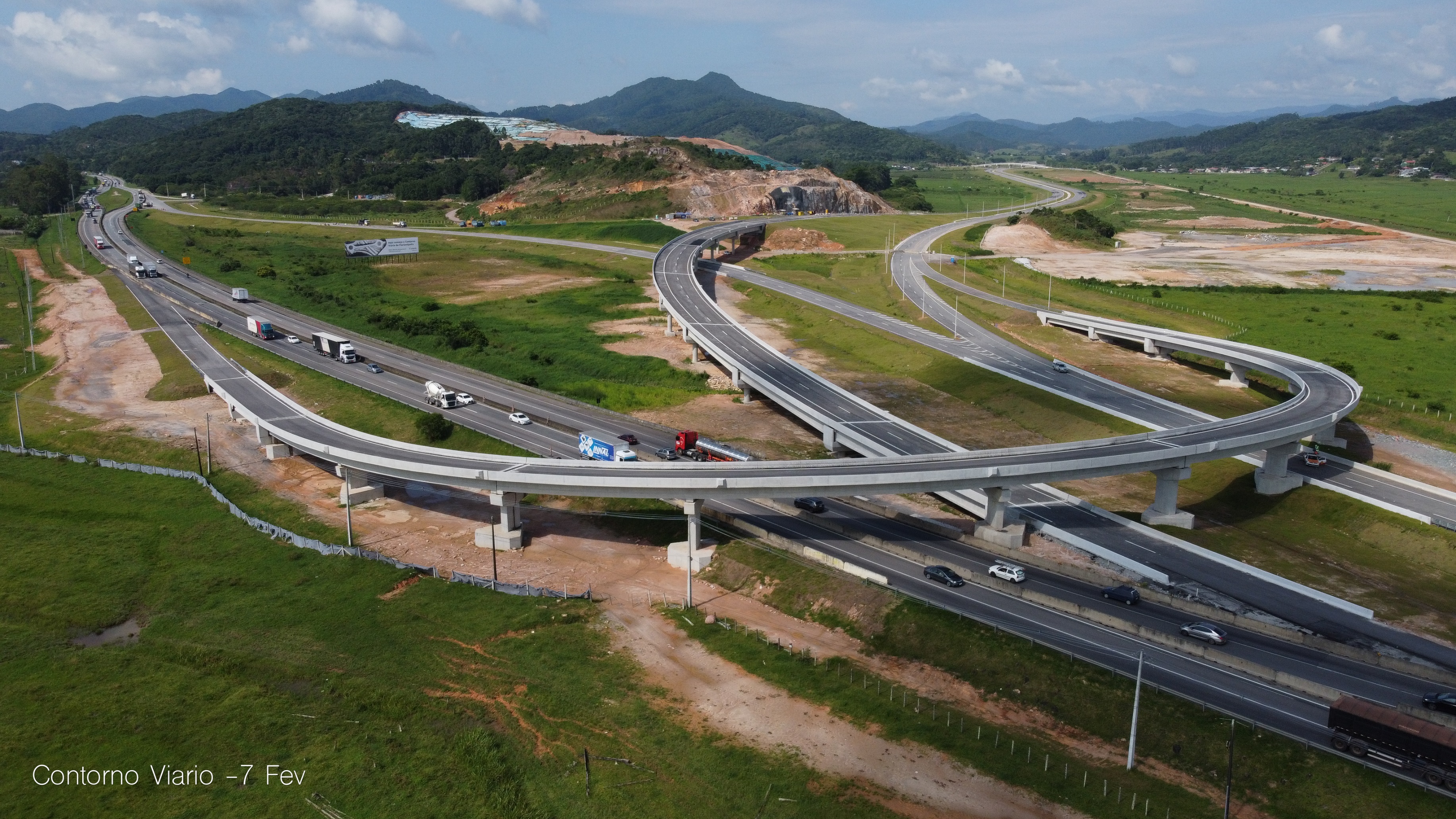 Florianópolis, 16.02.2024 - Uma análise realizada pela Federação das Indústrias de Santa Catarina (FIESC) na primeira quinzena de fevereiro aponta que será possível liberar o tráfego pelo Contorno Viário de Florianópolis em julho de 2024.