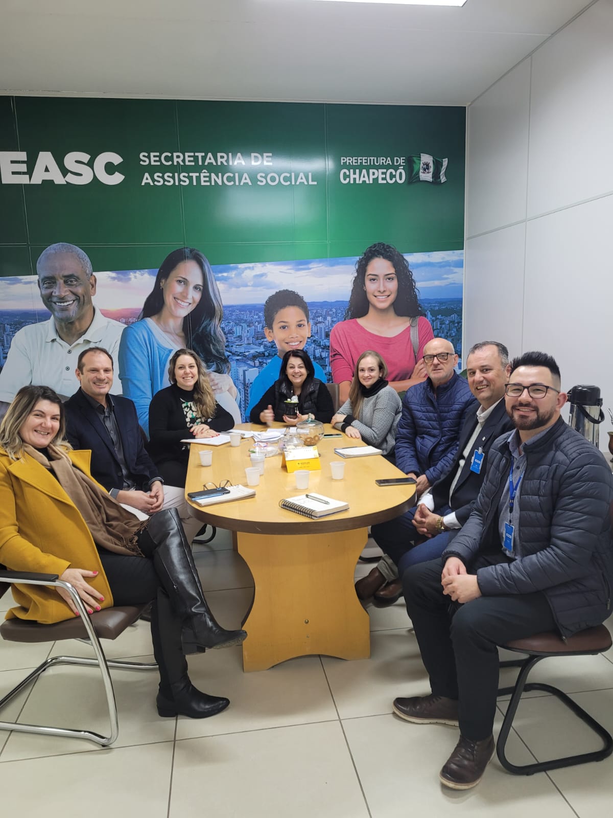 Também participaram da reunião o coordenador de Educação Profissional do SENAI da Região Oeste e Extremo Oeste, Willi Robert Sobotka, o supervisor de Educação Profissional do Senai Chapecó, Andrei Moreira Neves, a equipe de gestão do Sistema Único de Assistência Social (SUAS) do município e a coordenação do Programa Oportuniza Chapecó: Aline Nascimento Magro, Jussara Broca e Kadigea Dalapossa.