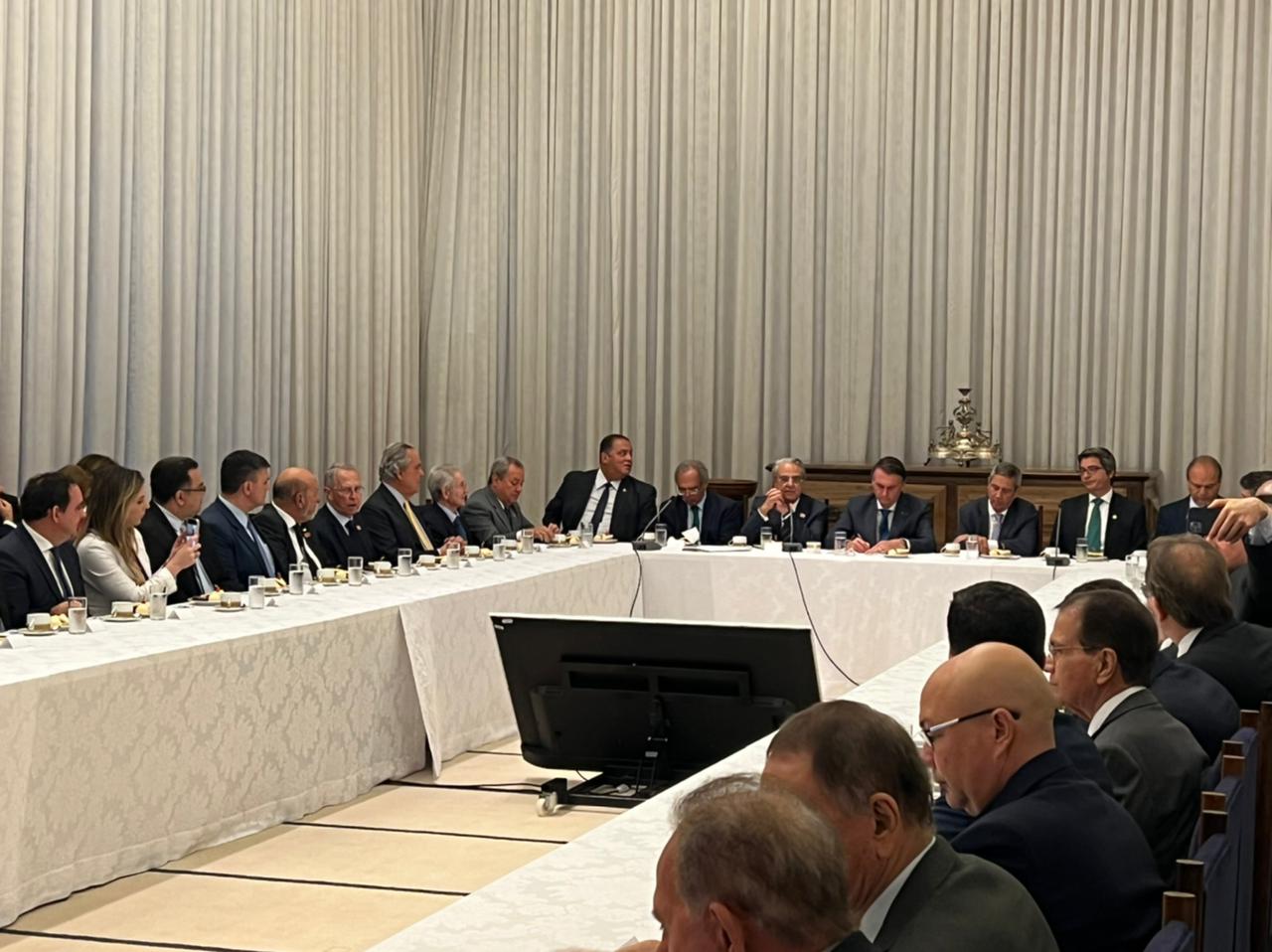 Florianópolis, 25.10.2022 - O presidente da Federação das Indústrias (FIESC), Mario Cezar de Aguiar, participou de encontro com o presidente Jair Bolsonaro, na noite desta segunda-feira, dia 24, no Palácio da Alvorada, em Brasília. O encontro contou com lideranças da Confederação Nacional da Indústria (CNI) de todo o país, que apresentaram o plano de retomada do setor, baseado em 11 eixos. O documento é endereçado aos dois candidatos que disputam a presidência da República no segundo turno.