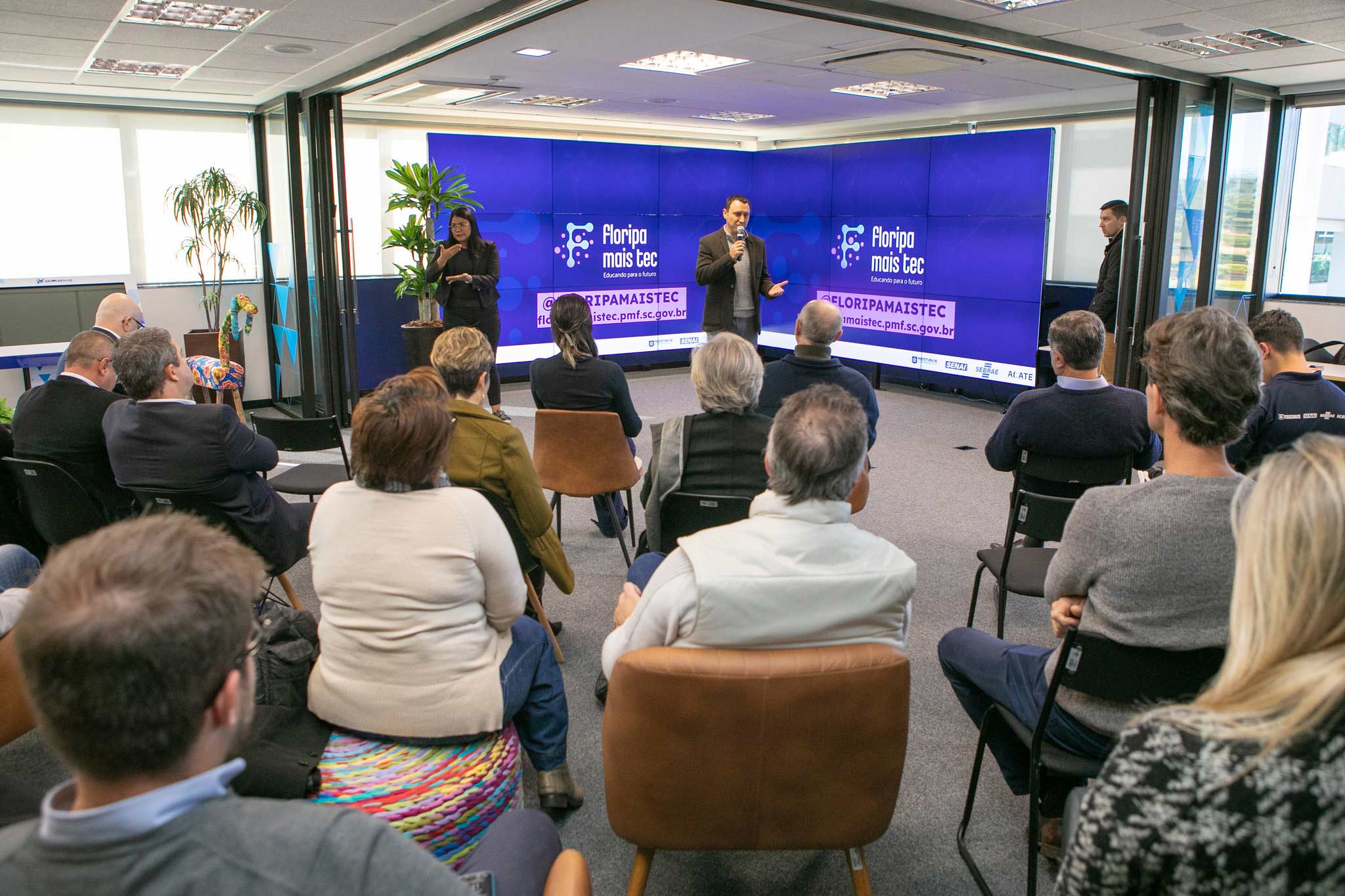 Florianópolis, 29.8.2022 - Mais de 15 mil jovens e adultos da Grande Florianópolis devem ser sensibilizados por meio do Floripa Mais Tec, que irá garantir formações gratuitas voltadas ao setor de tecnologia da informação. O programa, lançado nesta segunda-feira (29) no Sebrae Hub, visa estimular a formação de novos profissionais para a área de TI, setor que apresenta crescente demanda. A iniciativa é da Prefeitura Municipal de Florianópolis em parceria com o SENAI/FIESC, o Sebrae/SC e a ACATE. A próxima etapa do programa será no dia 24 de setembro, no Aulão do Futuro, em que são esperadas mais de 3,5 mil pessoas para acompanharem os profissionais renomados do setor de tecnologia que irão detalhar as oportunidades e particularidades de cada uma das nove trilhas de formação que serão disponibilizadas.