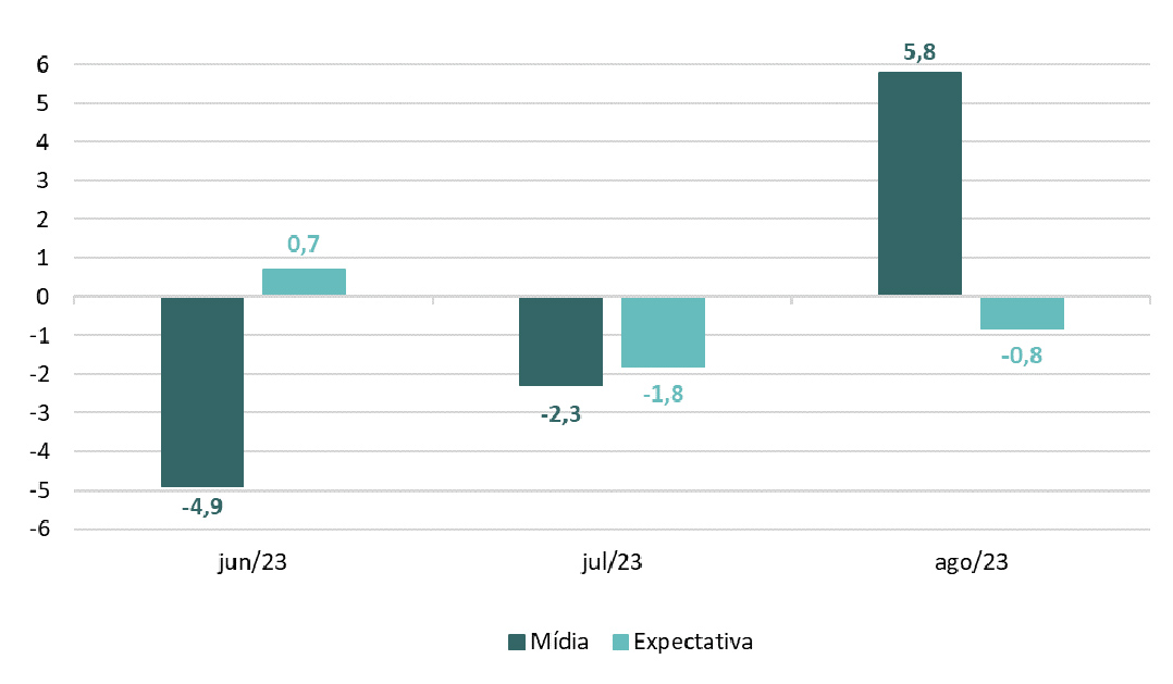 A alta em agosto foi puxada apenas pelo componente mídia, que é baseado na frequência de notícias com menção à incerteza publicadas na imprensa e que subiu 6,6 pontos.