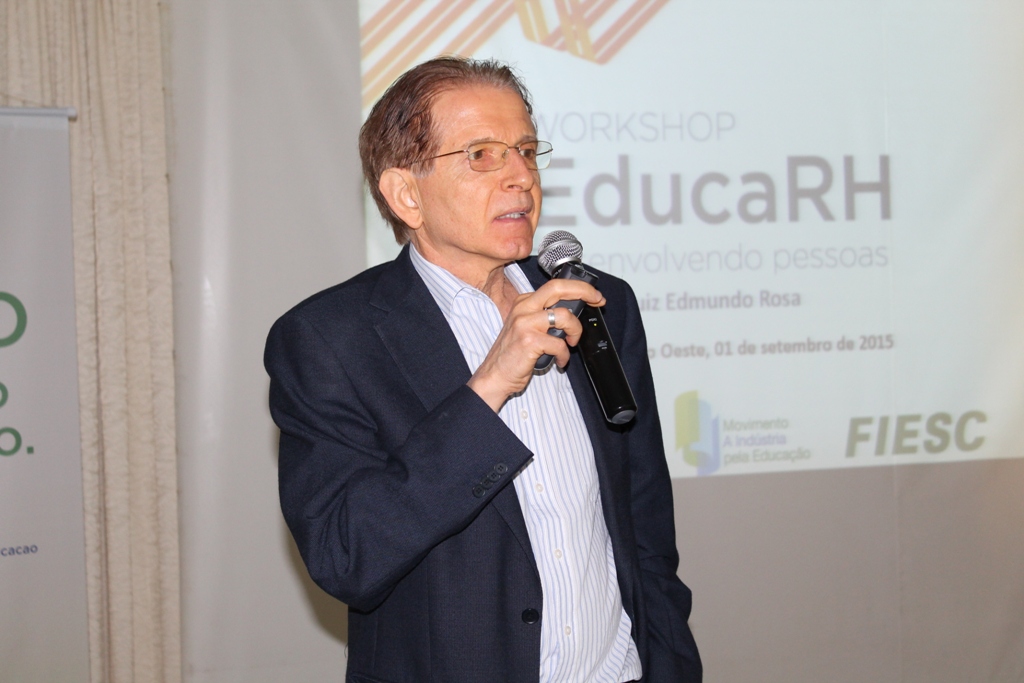 Chapecó, 2.09.2015 – O Brasil é um país muito criativo, porém pouco inovador na opinião do diretor de educação da Associação Brasileira de Recursos Humanos (ABRH), Luiz Edmundo Prestes Rosa, que participou do workshop EducaRH, em Chapecó, nesta quarta-feira (2). O evento foi promovido pela Federação das Indústrias de Santa Catarina (FIESC), em parceria com a ABRH-SC. Rosa abordou desafios e oportunidades relacionados à educação e à competitividade no mundo do trabalho.