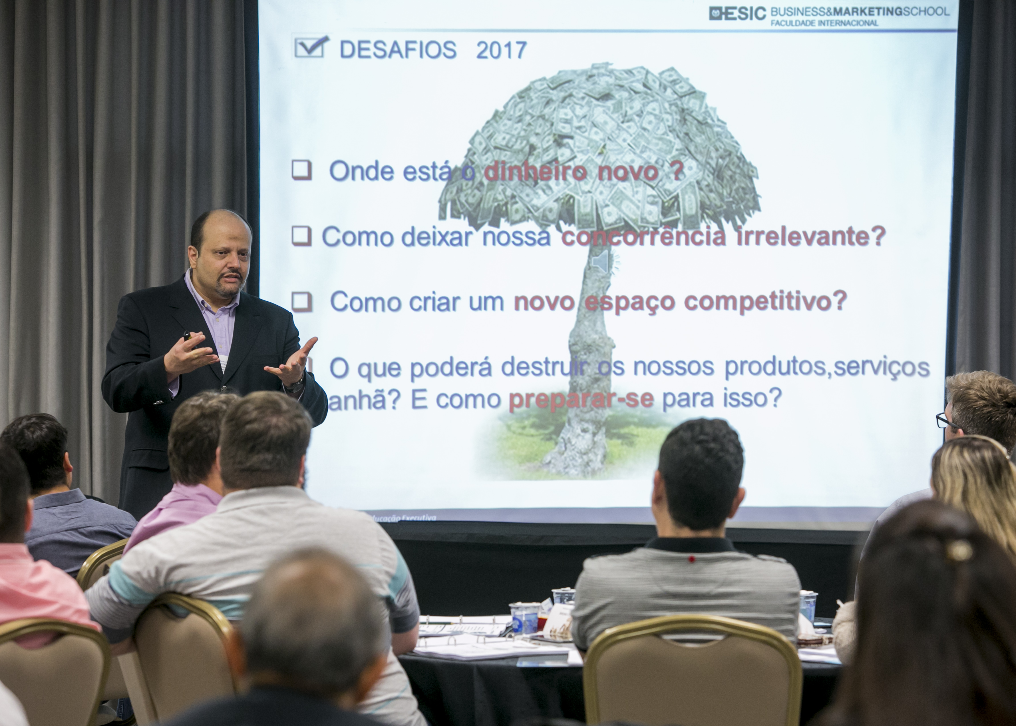 Florianópolis, 21.9.2016 – A busca por novos significados para processos e produtos em um cenário guiado por indicadores é uma das questões centrais em debate no segundo dia do Programa Internacional de Educação Executiva que o Instituto Euvaldo Lodi (IEL), entidade da FIESC, promove em Florianópolis nesta quarta-feira (21). A capacitação é realizada em parceria com a escola europeia de negócios ESIC Business Marketing School e reúne 47 executivos catarinenses para tratar de questões como estratégia, competitividade e inovação.