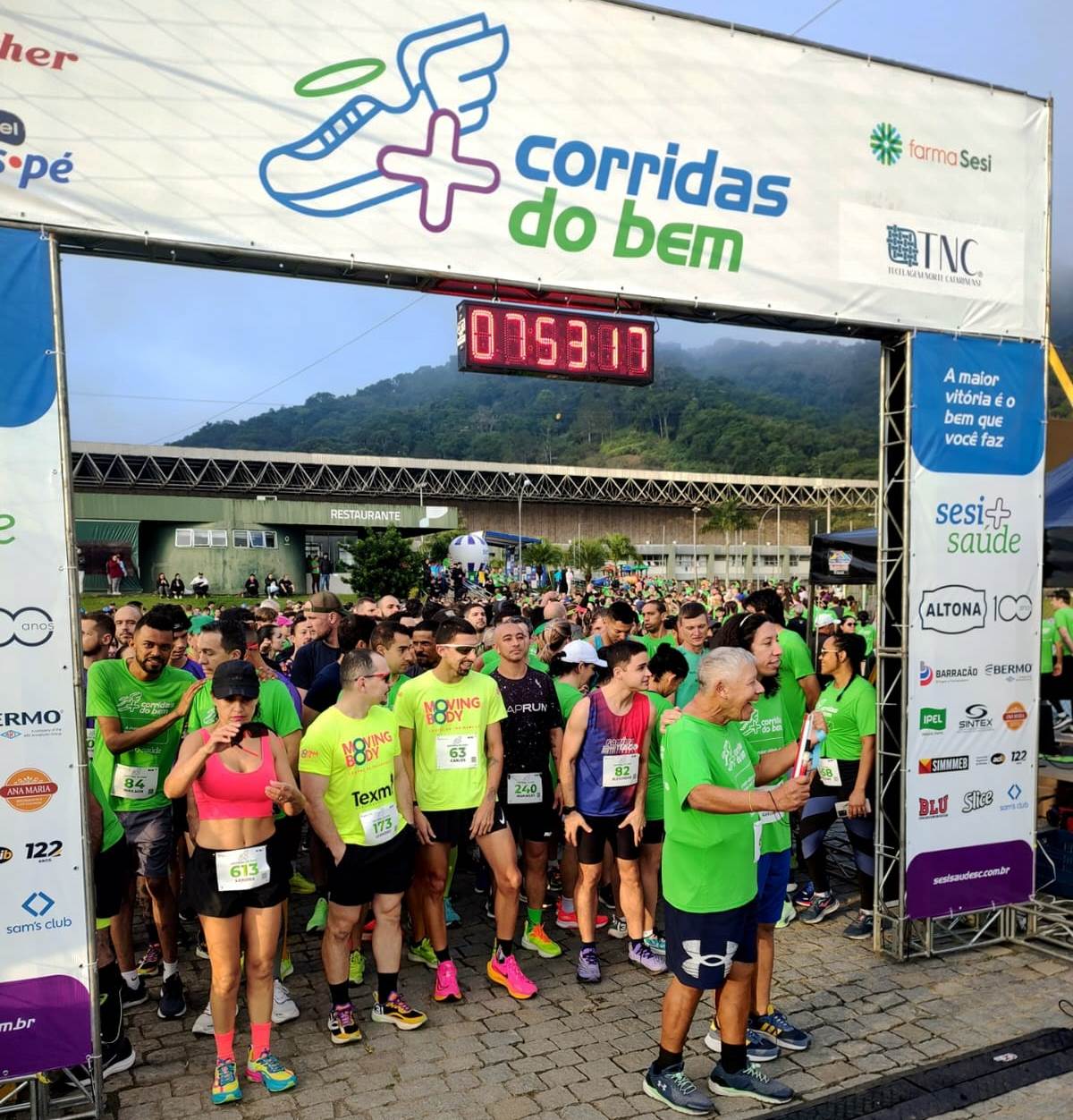 Florianópolis, 22.07.2024 – Mais de mil pessoas participaram no domingo (21) da etapa de Blumenau do circuito Corridas do Bem, organizado pelo SESI. Foi a terceira de 10 provas até dezembro.