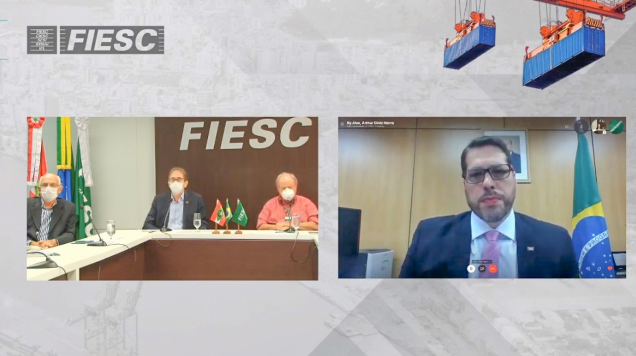 O presidente da FIESC, Mario Cezar de Aguiar, destacou as principais ações da Federação no enfrentamento ao coronavírus. “Temos trabalhado com representantes dos governos estadual e federal para encontrar soluções para os problemas. As medidas provisórias 927 e 936 foram fundamentais para a preservação do emprego. Iniciamos cedo o isolamento e, gradativamente e com o nosso apoio, liberamos a atividade econômica. Por ser um estado empreendedor e industrializado, somos otimistas quanto à retomada da economia, desde que as pessoas sigam os protocolos de segurança”, afirmou. Aguiar lembrou ainda que o custo logístico tem grande peso na competitividade das empresas, inclusive para aquelas da base industrial de defesa. “Precisamos dar mais condições para que a indústria possa ser mais competitiva. Sabemos que a nossa indústria precisa se atualizar e se digitalizar. Com um ambiente mais favorável, os investimentos voltarão e esperamos que as reformas estruturantes passem pelo Congresso e deem condição ao Brasil de ser um país não apenas de produtos primários, mas também de manufaturados, o que é importante para fortalecer a industrialização nacional”, complementou.