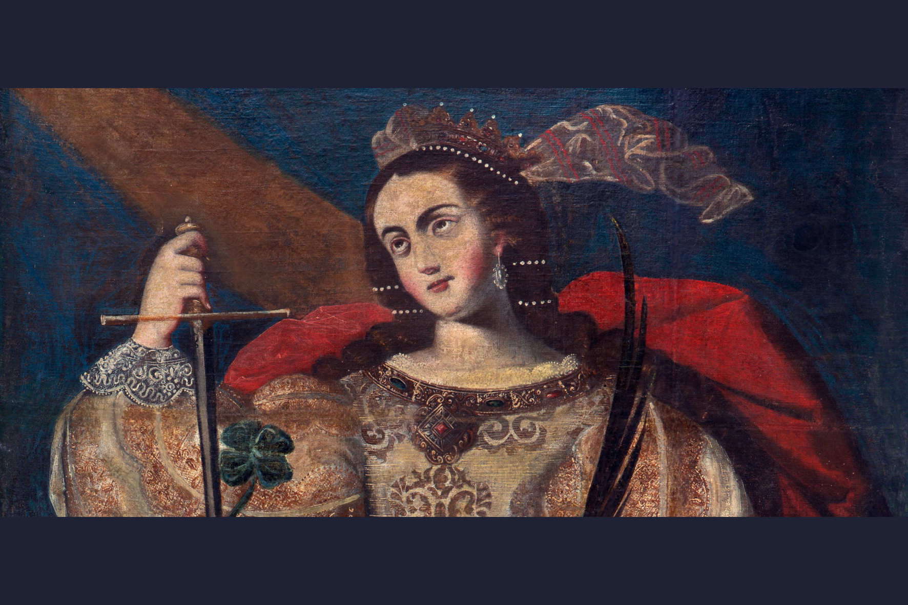Em salas distintas da exposição “Etérea”, uma delas é dedicada à Santa Catarina de Alexandria que dá nome ao Estado. Em 1526, quando desembarca na então chamada Ilha dos Patos, o navegador italiano Sebastião Caboto batizou o lugar como Ilha de Santa Catarina. Nascida na cidade egípcia de Alexandria, Catarina cresce como uma pagã, mas em sua juventude converte-se ao cristianismo. Bela, inteligente e culta, estuda filosofia, teologia e outras ciências, razão pela qual é evocada como protetora dos estudantes, intelectuais e filósofos. Imortalizada pela literatura e arte, a Universidade de Paris a tem como padroeira, assim como o Estado de Santa Catarina. Muitas histórias e lendas marcam a vida da santa que pode ser apreciada na mostra em cinco representações: da Europa, na técnica óleo e douramento sobre cobre, datado entre os séculos 16 e 17; do Brasil, entre o século 18 e 19, uma escultura em madeira policromada; um óleo sobre tela do século 18, da escola cusquenha, instituição de pintura colonial peruana centrada na cidade de Cuzco, apontada como o primeiro centro pictórico organizado no então chamado Novo Mundo; “Santa Catarina Princesa de Alexandria”, um Rodrigo de Haro do fim dos anos 1960 realizado em acrílica sobre eucatex. E, por fim, um fragmento, um óleo sobre tela, também representativo da escola cusquenha do século 18.