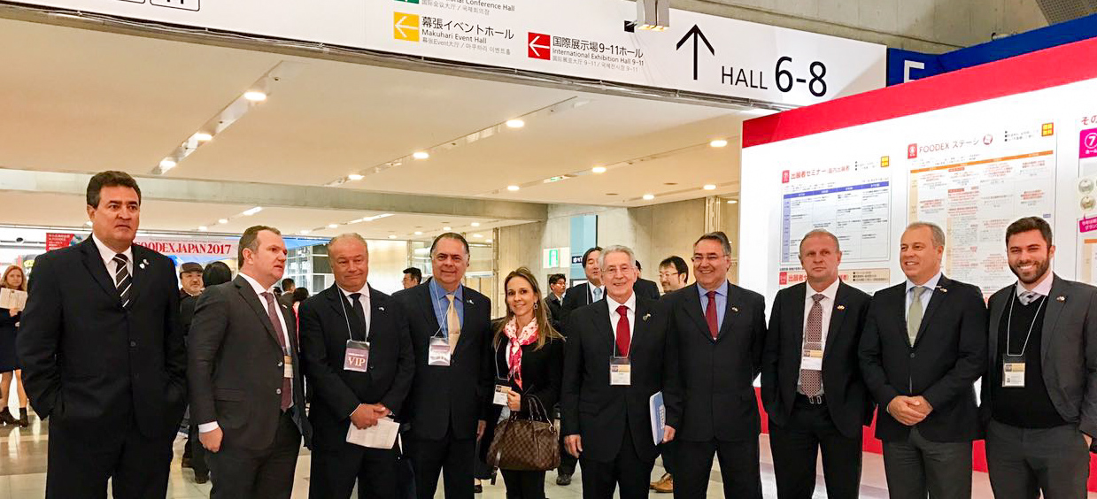 Florianópolis, 7.3.2017 – Integrantes da missão catarinense ao Japão reuniram-se com representantes dos importadores de carne Mitsui & Co, Nippon Ham e Mitsubishi, durante o primeiro dia da Foodex Japan 2017, a maior feira de alimentos e bebidas da Ásia, realizada em Tóquio. A comitiva encontrou-se, nesta terça-feira (7), com potenciais compradores no pavilhão do Brasil, que tem 24 empresas expositoras. Hoje o Japão importa carne suína principalmente dos Estados Unidos, México e Chile. Veja abaixo o perfil das empresas Mitsui & Co, Nippon Ham e Mitsubishi.