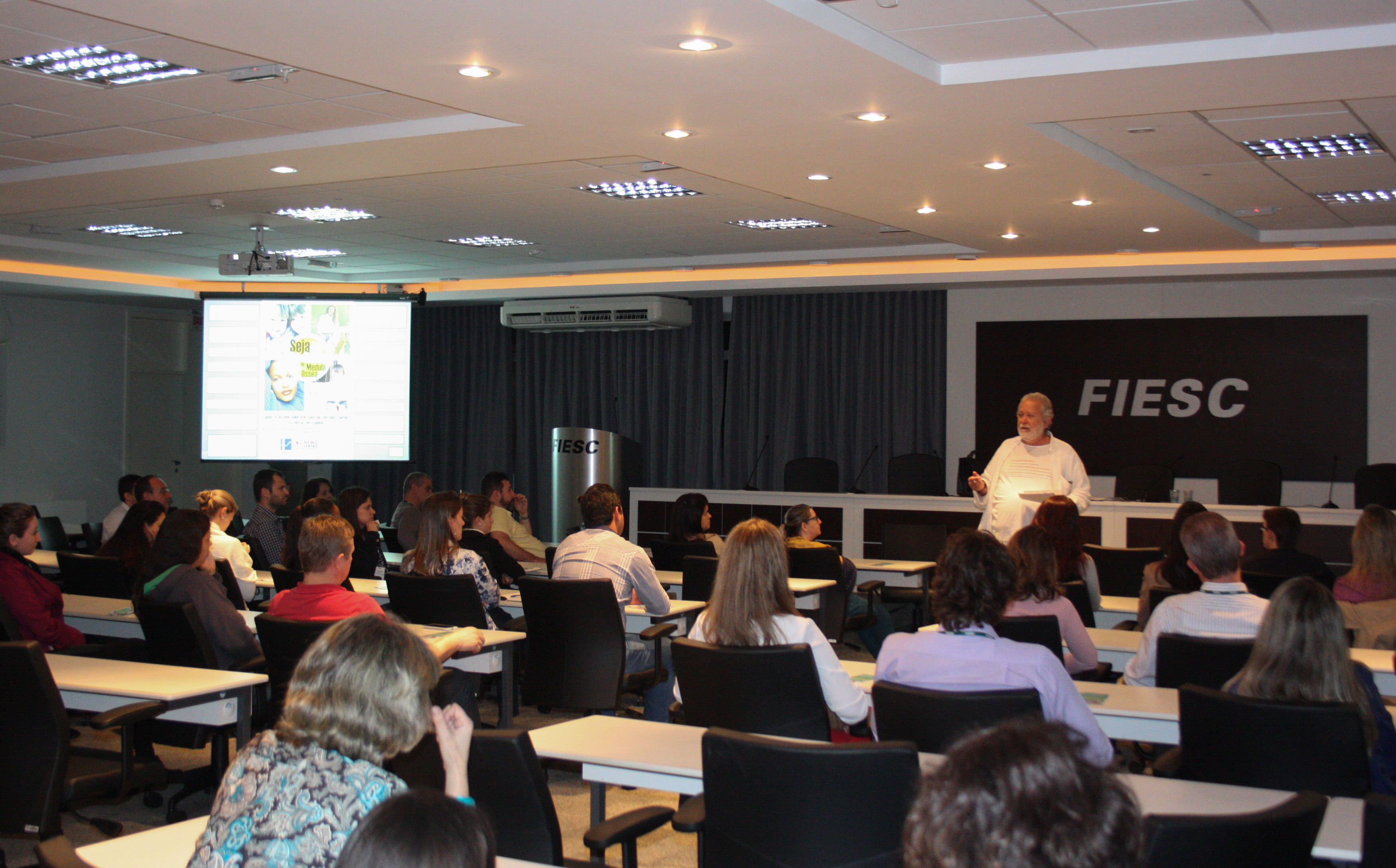 Florianópolis, 27.08.2015 – A FIESC promoveu nesta quinta-feira (27), em Florianópolis, a palestra Medula Óssea - uma esperança de Vida. O evento, que reuniu colaboradores de todas as casas da entidade, objetivou ampliar a discussão sobre o tema. A iniciativa integra as ações promovidas pela Federação no mês da saúde.