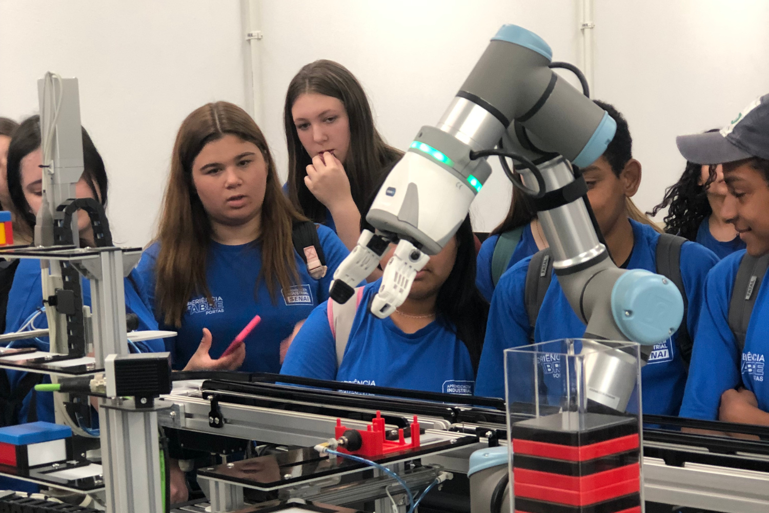 Os jovens aprendizes que estudam no Senai e atuam em empresas da região repassavam informações sobre as suas práticas aos visitantes. “É muito bom poder compartilhar a minha vivência de estudar e trabalhar como aprendiz. A gente cria uma experiência que é importante para a construção da nossa vida profissional”, destaca Gabriel Moreira de Lima, que trabalha na Grossl e cursa assistente administrativo industrial.