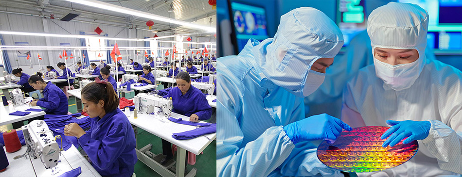 Indústria têxtil na China e de chips em Taiwan: Ásia tomou dianteira em vários setores - Fotos: Shutterstock