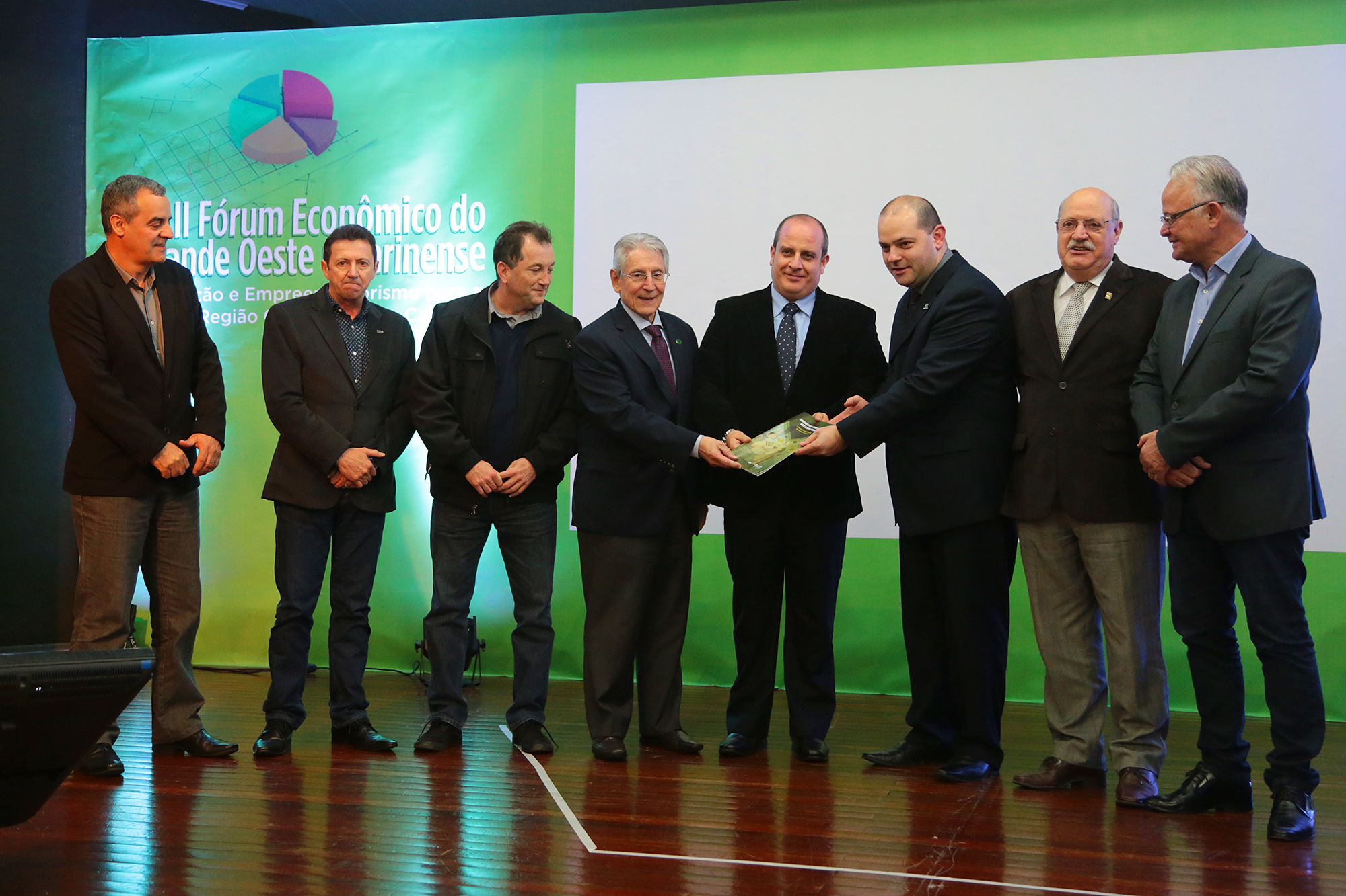 Chapecó, 11.8.2016 - As prioridades para o desenvolvimento da região Oeste de Santa Catarina foram apresentadas no 2º Fórum Econômico do Oeste Catarinense, realizado na noite desta quinta-feira (11), em Chapecó. No evento foi lançado documento, com nove desafios que precisam ser enfrentados: educação, rodovias, ferrovias, aeroporto, energia, comunicação, centro de tecnologia e inovação, saúde e agroindústria. Para cada desafio são propostas ações para curto, médio e longo prazos.