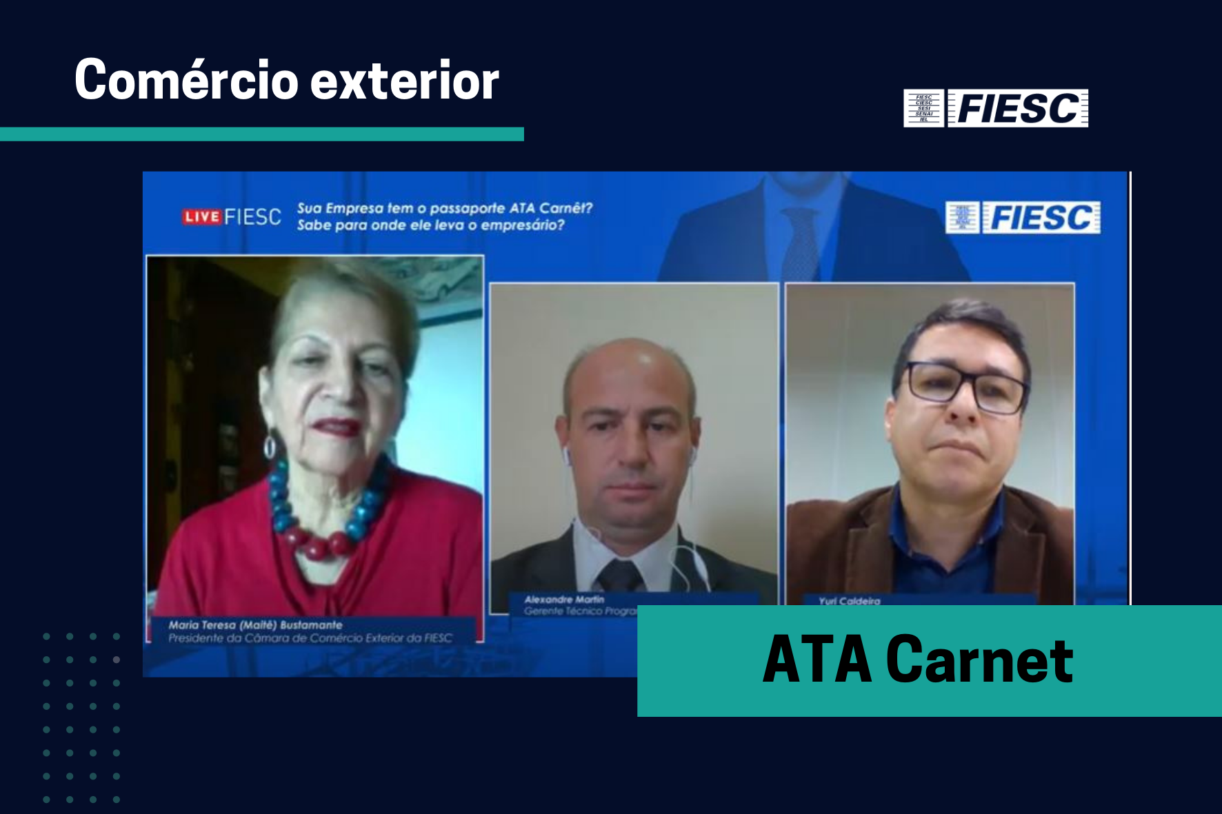 Florianópolis, 22.9.2020 – Em live transmitida pelo canal da FIESC no YouTube, nesta terça-feira, dia 22, especialistas da entidade apresentaram os benefícios do uso do ATA Carnet, documento aduaneiro válido internacionalmente que permite a exportação e a importação temporária de bens, livre de impostos de importação, pelo período de um ano. O documento é emitido pelo Brasil e aceito em 78 países a um custo pré-determinado, de acordo com o valor do produto a ser exportado. Na prática, é um passaporte que simplifica as etapas de exportação e importação temporária nos países em que for apresentado, oferecendo agilidade e segurança no desembaraço aduaneiro de bens.