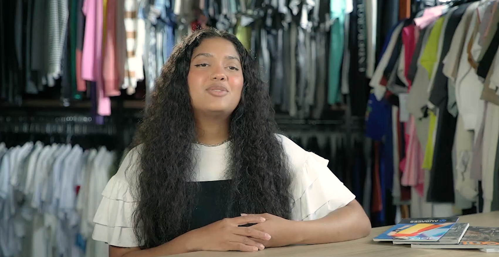 “O programa foi uma luz no fim do túnel, uma porta de inspiração”, diz Rayza Fernandes Piccini, egressa do programa que atualmente trabalha no setor de moda em Gaspar.