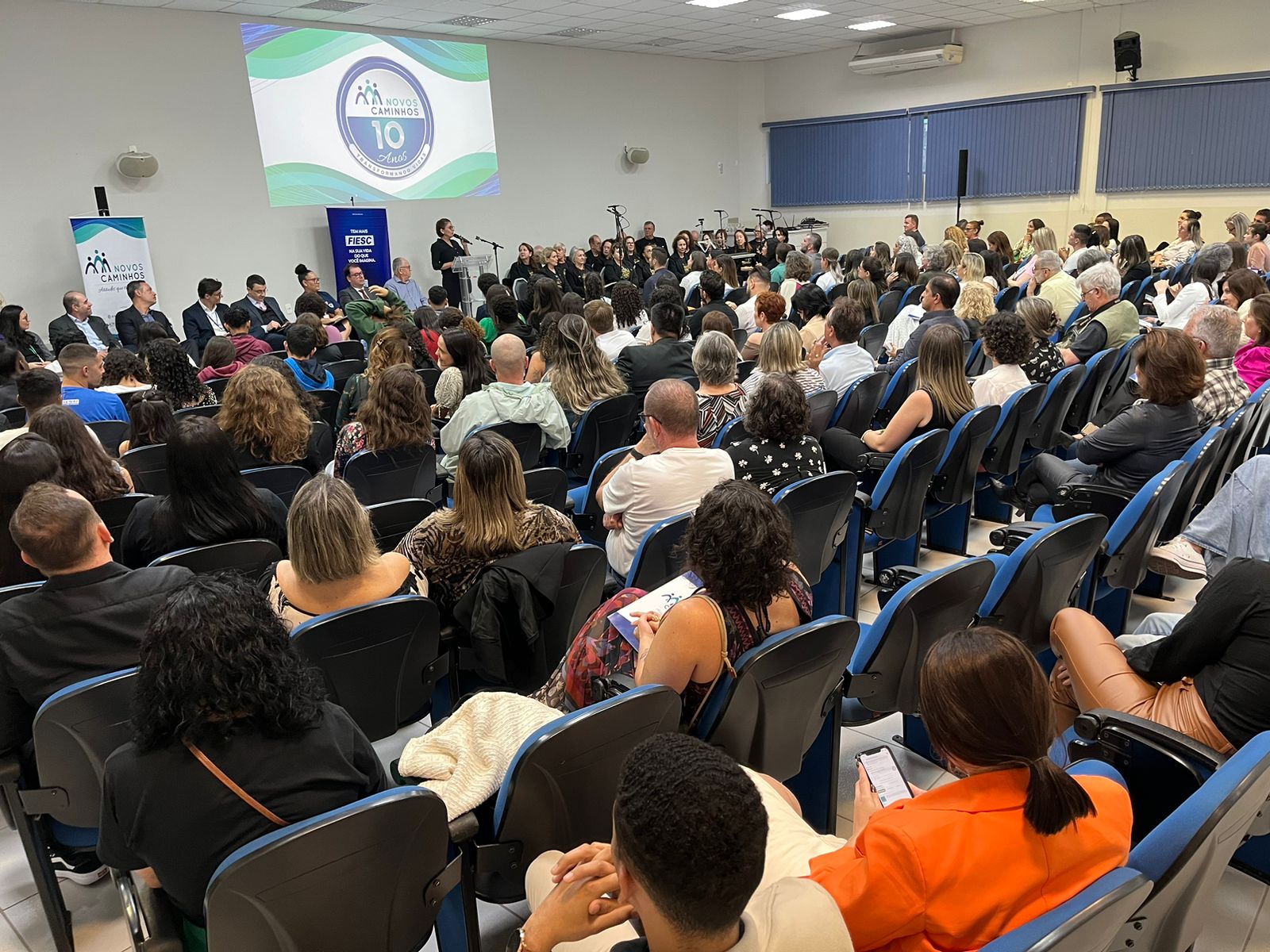 Florianópolis, 1°.11.2023 - Os jovens do Programa Novos Caminhos comemoraram mais uma conquista nesta terça-feira (31). Em cerimônia realizada no SENAI de São José, 98 adolescentes que vivem, de forma temporária, nas casas de acolhimento da Grande Florianópolis, se formaram em cursos de educação básica e profissional, atividades de vida saudável e ações de empregabilidade, promovidas pela iniciativa que surgiu de uma parceria inicial da Federação das Indústrias (FIESC), do Tribunal de Justiça (TJSC) e da Associação dos Magistrados Catarinenses (AMC).