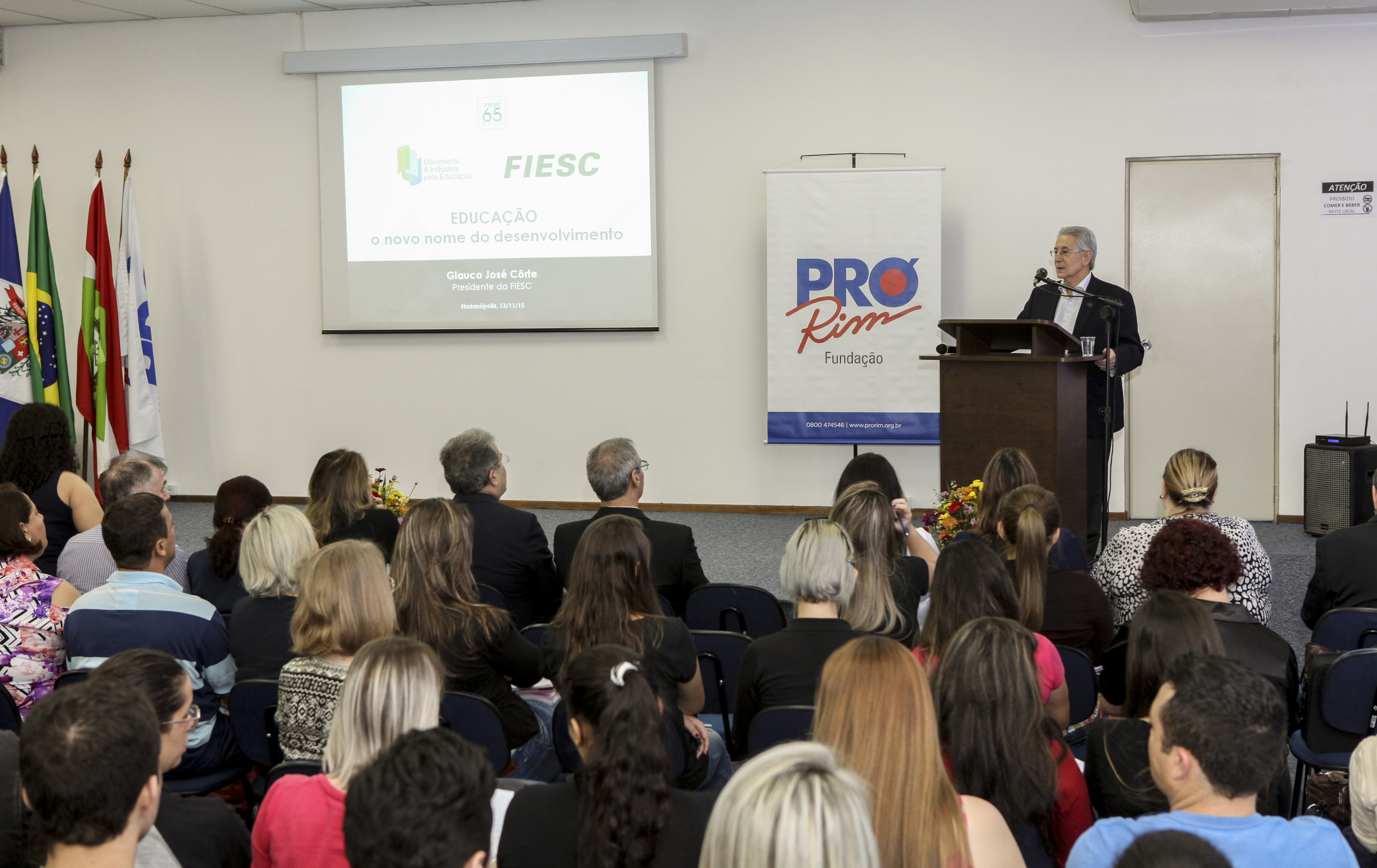Joinville, 13.11.2015 – Recuperar tardiamente a educação que deveria ter sido ministrada na infância é 60% mais caro e apresenta resultados menos eficientes. A afirmativa foi feita pelo presidente da FIESC, Glauco José Côrte, em palestra durante evento alusivo ao 10º aniversário do Instituto Pró-Rim de Educação e Pesquisa em Saúde, braço educacional da Fundação Pró-Rim. Além do aspecto econômico, Côrte destacou que a baixa escolaridade impacta na estimativa de vida. “Os filhos de uma mãe com baixa escolaridade têm cinco vezes mais risco de morte do que os filhos de mães com bom nível de escolarização, pelos cuidados com higiene e saúde dispensados”, afirmou.