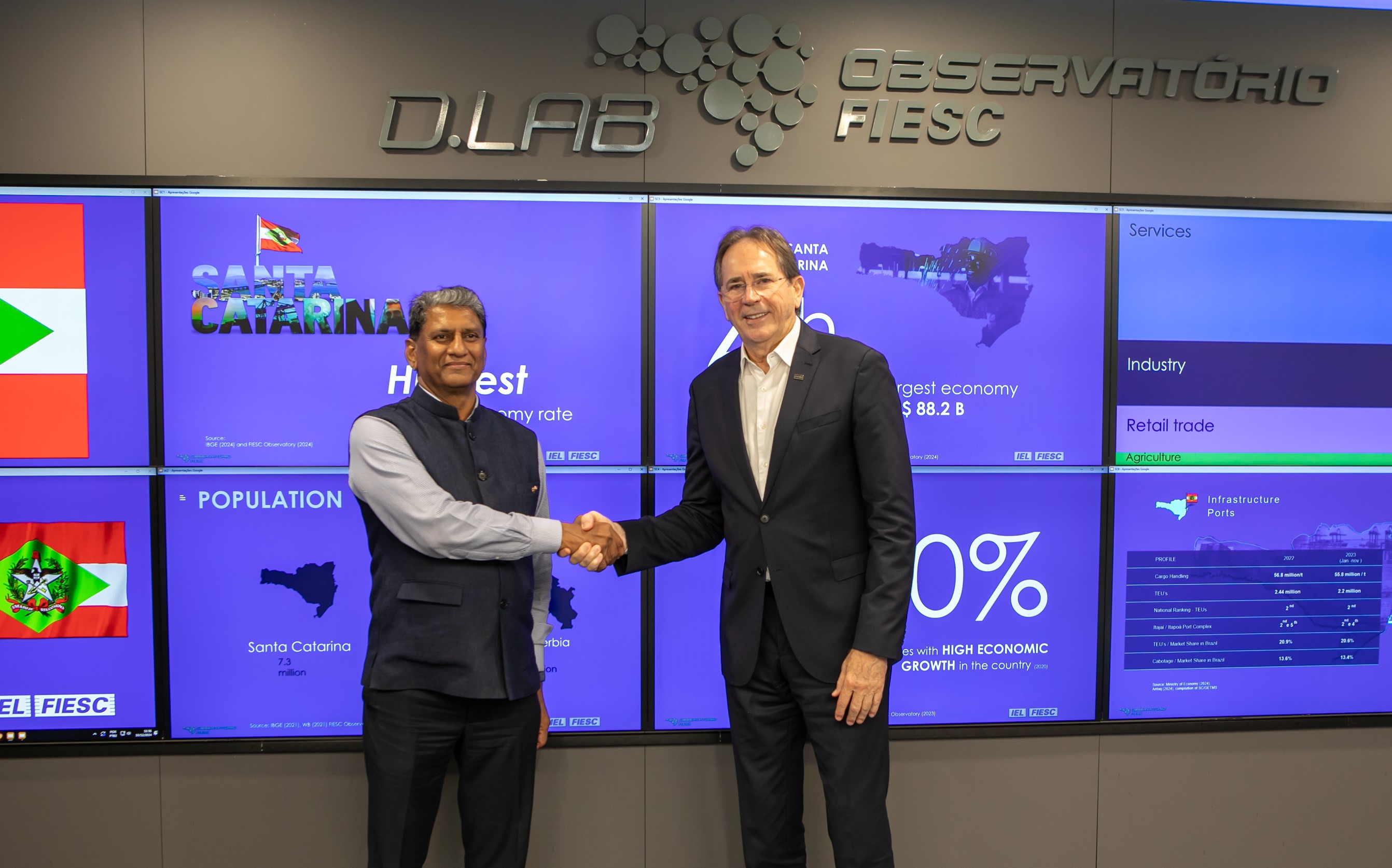 Aguiar destacou a expertise do Instituto SENAI de Inovação e Sistemas Embarcados, que participou do desenvolvimento de satélites em parceria com a Visiona, joint venture entre a Embraer e a Telebras. Além disso, o presidente da Federação destacou o potencial de incremento da corrente de comércio entre o estado e a Índia.