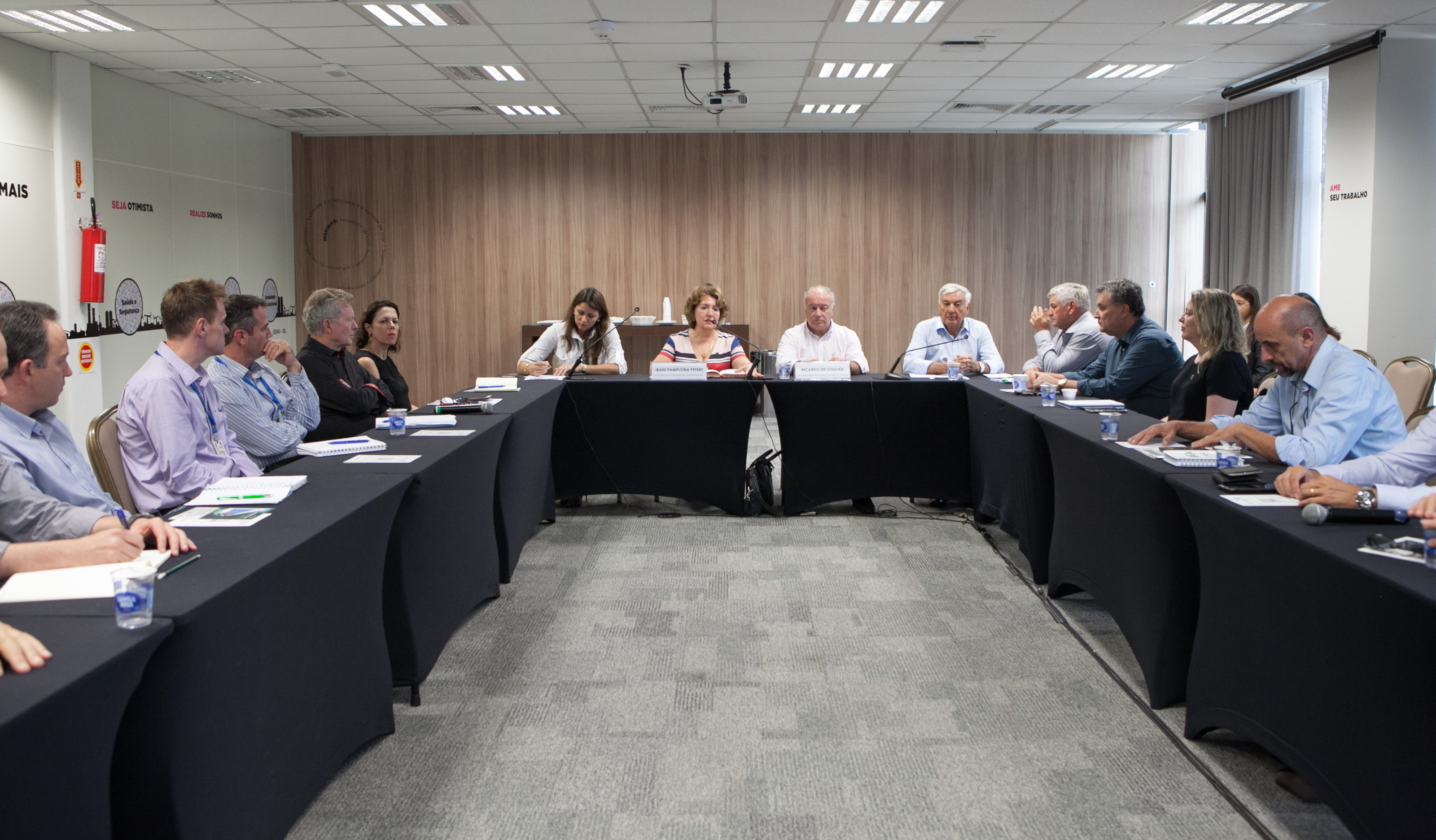 Florianópolis, 21.2.2019 – A sanidade animal é assunto estratégico para Santa Catarina e a antecipação de 2021 para meados de 2019 da retirada da vacinação contra a febre aftosa pelo Paraná preocupa Santa Catarina, disse o secretário de Agricultura e Pesca, Ricardo de Gouvêa. Ele participou da reunião da Câmara da Agroindústria da FIESC, realizada nesta quinta-feira, dia 21, em Florianopolis. Este foi o primeiro encontro conduzido pela nova presidente da Câmara, Irani Pamplona Peters, que sucede o industrial Mario Lanznaster.