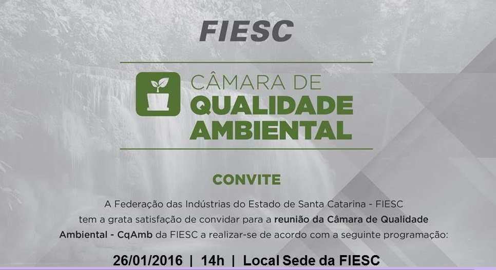 Florianópolis, 21.1.2015 – A Câmara de Qualidade Ambiental da FIESC realiza reunião no dia 26 de janeiro para debater a outorga de direito de uso dos recursos hídricos em Santa Catarina e as ações promovidas pela Secretaria de Desenvolvimento Econômico Sustentável em relação às mudanças climáticas. O encontro se iniciará às 14 horas, na FIESC, em Florianópolis.