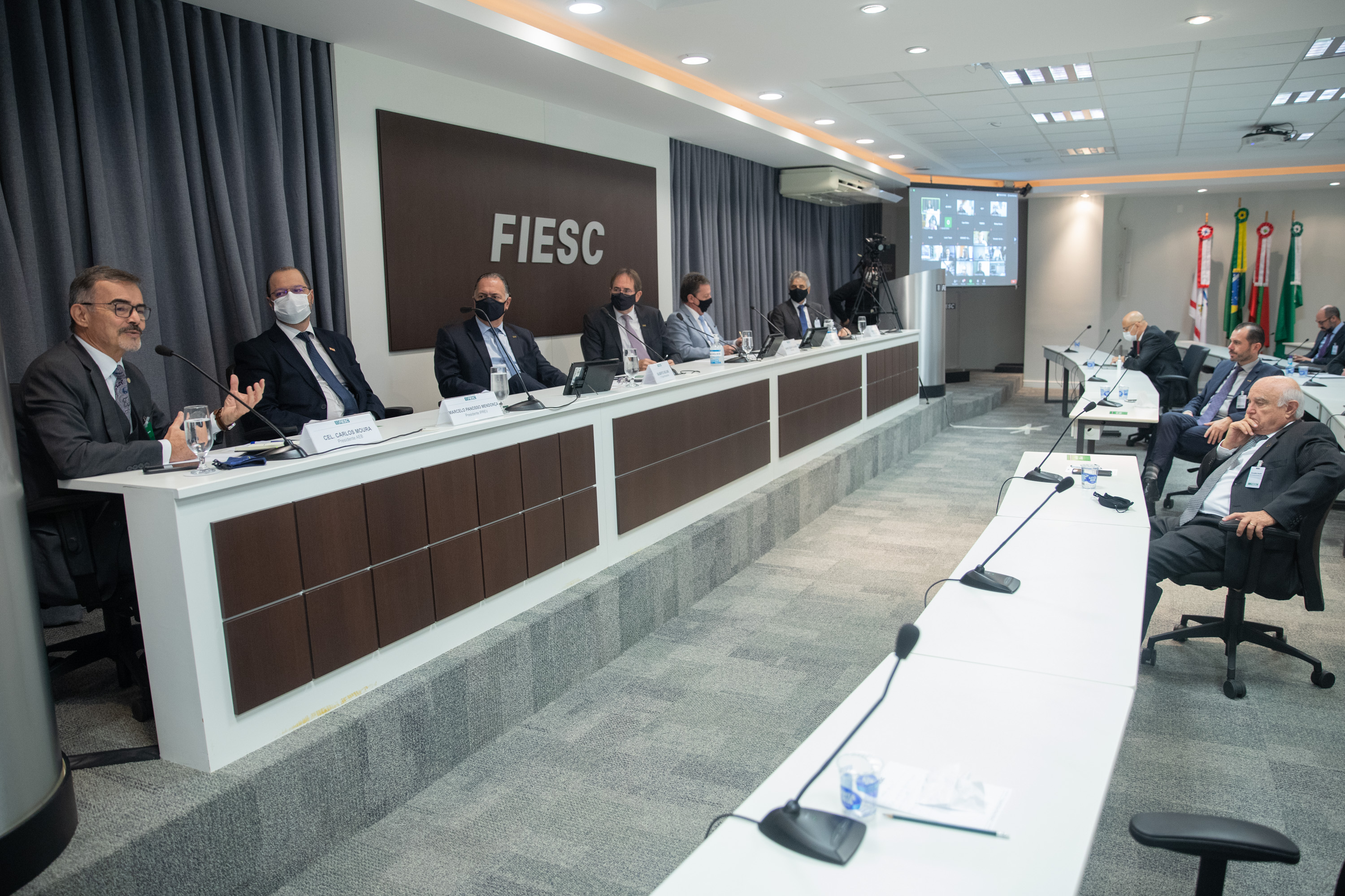 Florianópolis, 25.6.2021 - Começa nos próximos meses o desenvolvimento dos três primeiros nanossatélites da Constelação Catarina, uma frota a ser construída em Santa Catarina pelo Instituto SENAI de Inovação em Sistemas Embarcados e a Universidade Federal de Santa Catarina (UFSC), com apoio da Agência Espacial Brasileira (AEB) e a participação do Instituto Nacional de Pesquisas Espaciais (INPE) e outras instituições. O anúncio foi feito pelos diretores da AEB, durante a reunião de diretoria da FIESC nesta sexta (25). A constelação será composta por 13 unidades, que darão apoio ao desenvolvimento industrial, ao agronegócio, aos projetos de cidades inteligentes, saúde, segurança e defesa civil, além de outras aplicações.