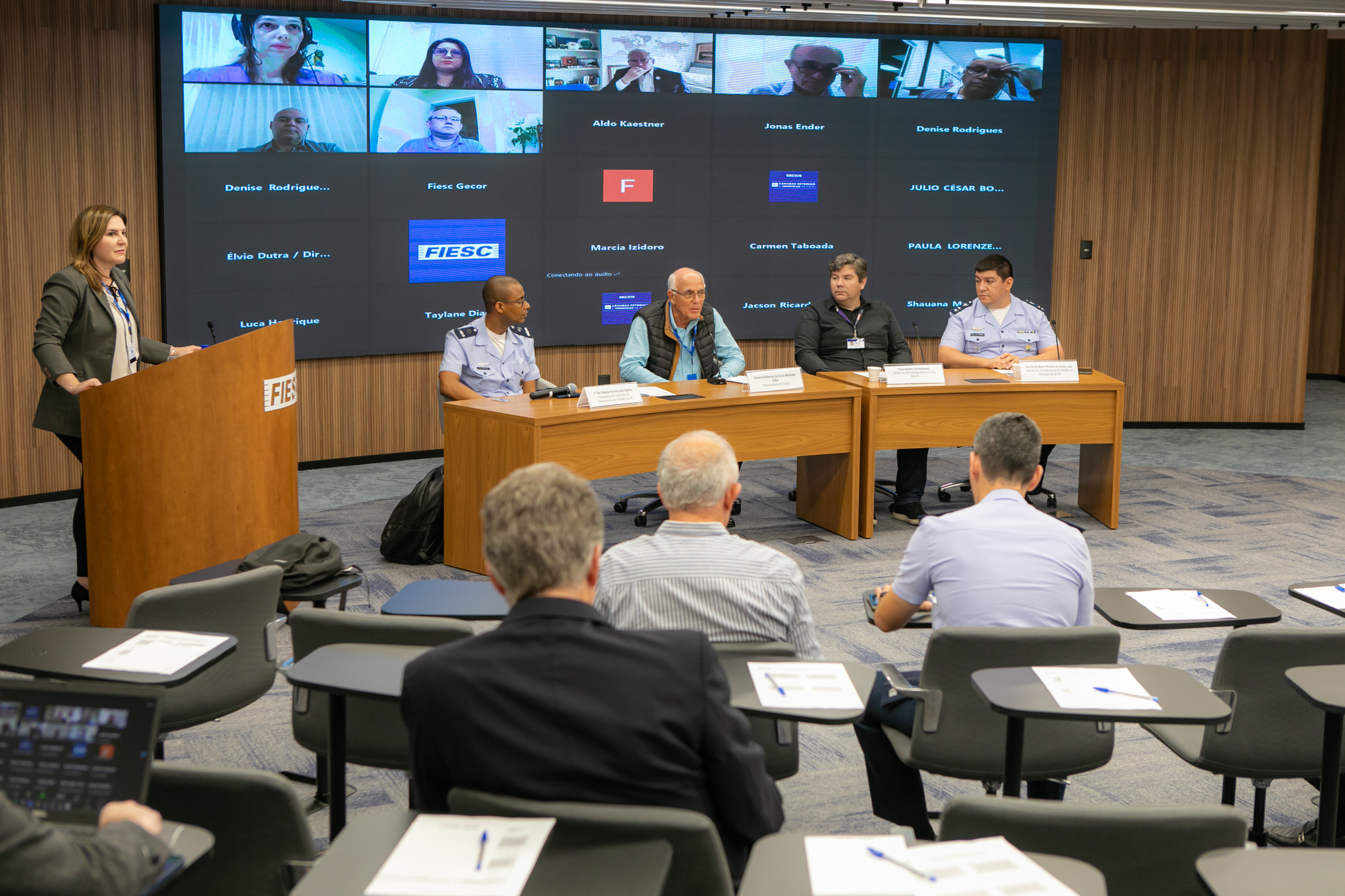 O 1° Tenente Oderlei Ferreira dos Santos, representante da Divisão de Desenvolvimento Industrial do IFI, apresentou o Sistema Integrado de Fomento à Indústria Aeroespacial (SIFIAER), o qual as empresas que têm interesse em atuar nesse segmento podem se cadastrar a fim de obter divulgação e serem relacionadas nos programas de fomento. Também apresentou o Catálogo de Empresas do Setor Aeroespacial (CESAER) e o Convênio ICMS 75/91 que oferece incentivo fiscal para empresas nacionais da indústria aeroespacial e seus fornecedores. Ele informou que há 462 empresas mapeadas que integram a cadeia de fornecimento do setor aeroespacial, das quais cerca de 10% estão em Santa Catarina.