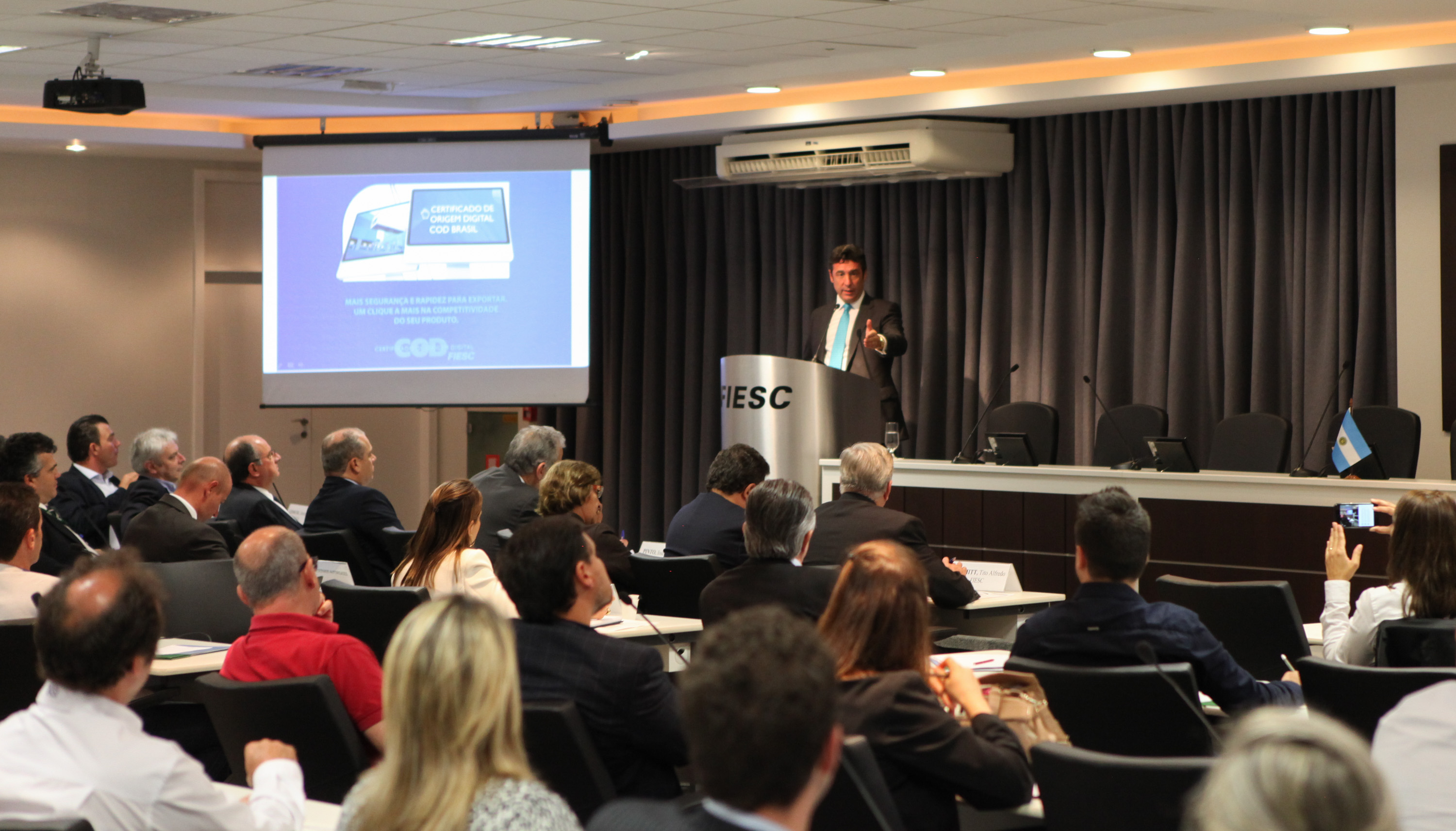Florianópolis, 7.11.2016 – “O Estado de Santa Catarina é sócio estratégico para a Argentina. Queremos comprar mais dele e vender mais para ele, aproveitando as relações históricas para reorganizar a integração bilateral que tantos êxitos tiveram ao longo dos anos”, disse o embaixador da Argentina no Brasil, Carlos Alfredo Magariños. Ele participou de seminário promovido pela Federação das Indústrias de Santa Catarina (FIESC), nesta segunda-feira (7), em Florianópolis.