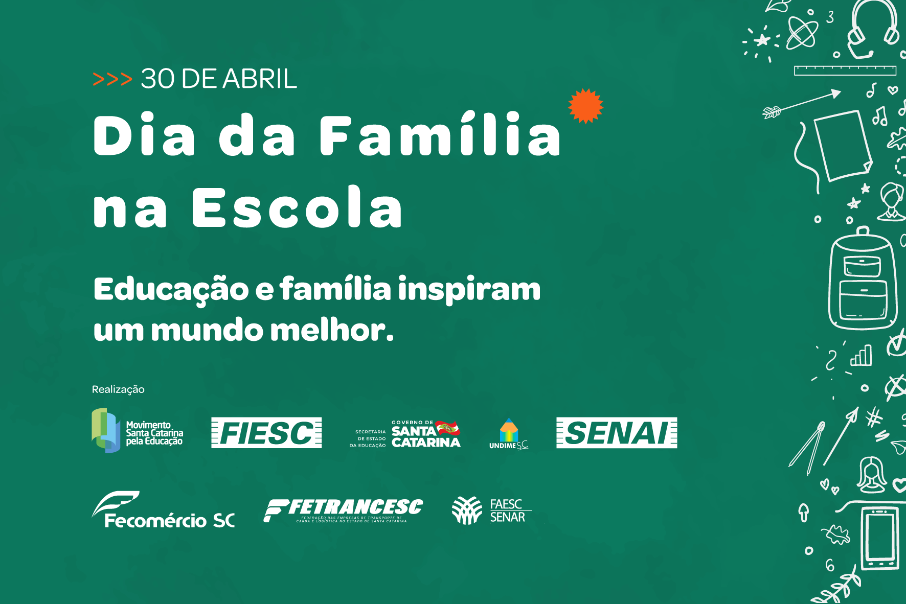 Florianópolis, 5.4.2022 – Escolas municipais e estaduais, além da rede escolar da FIESC (SESI e SENAI), FECOMÉRCIO (SESC e SENAC), FAESC (SENAR) e FETRANCESC (SEST e SENAT) de todo o estado promovem em 30 de abril (sábado) o Dia da Família na Escola. Atividades presenciais serão conduzidas nas unidades e informadas à comunidade escolar.