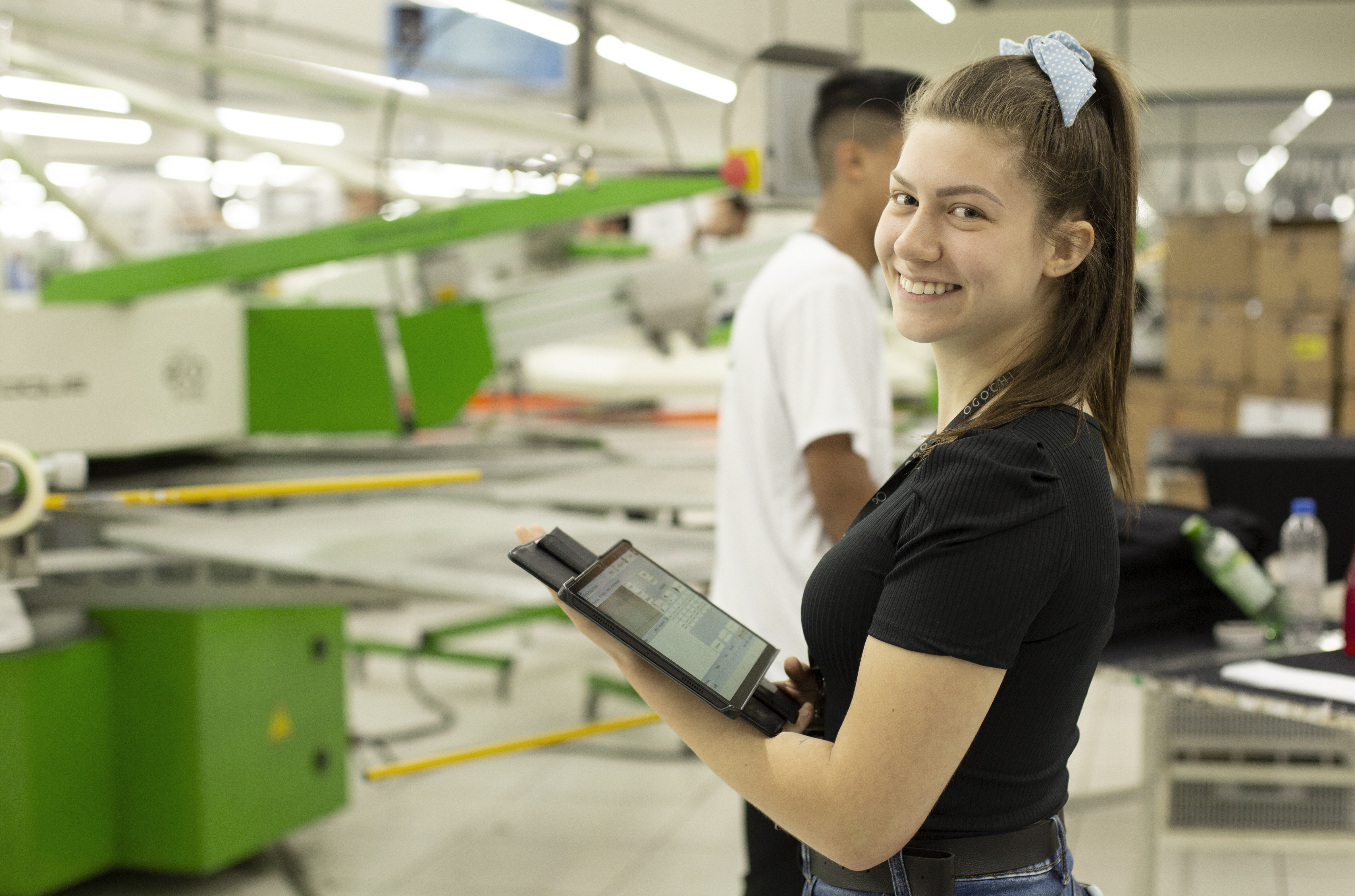 Entre esses está Laiza Favero (foto), que estudou no Senai e trabalha na Ogochi, em São Carlos-SC. Laiza iniciou sua trajetória na empresa como aprendiz e foi efetivada como cronometrista.