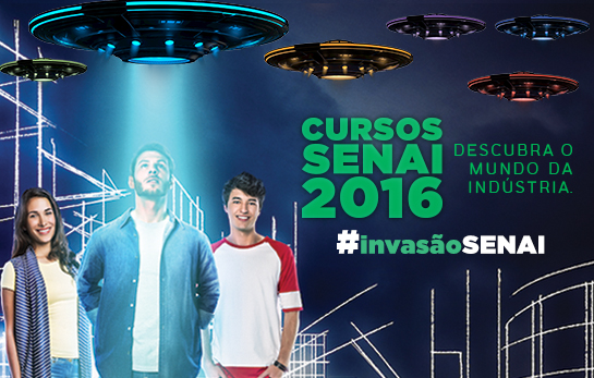 Campanha - Para marcar a abertura das vagas de 2016, o SENAI/SC lançou a campanha Invasão SENAI, que convida as pessoas a conheceram o mundo da indústria. A ação despertou a atenção nas redes sociais com o lançamento de teasers que mostravam registros amadores de discos voadores em cidades catarinenses. Apenas um deles, ambientado em Florianópolis, obteve mais de 44 mil visualizações. Além dos teasers, a ação conta com filmes de TV, spots de rádio, publicações em redes sociais, banners, posts patrocinados em blogs e fanpages, materiais impressos e mídia externa em todo o Estado.